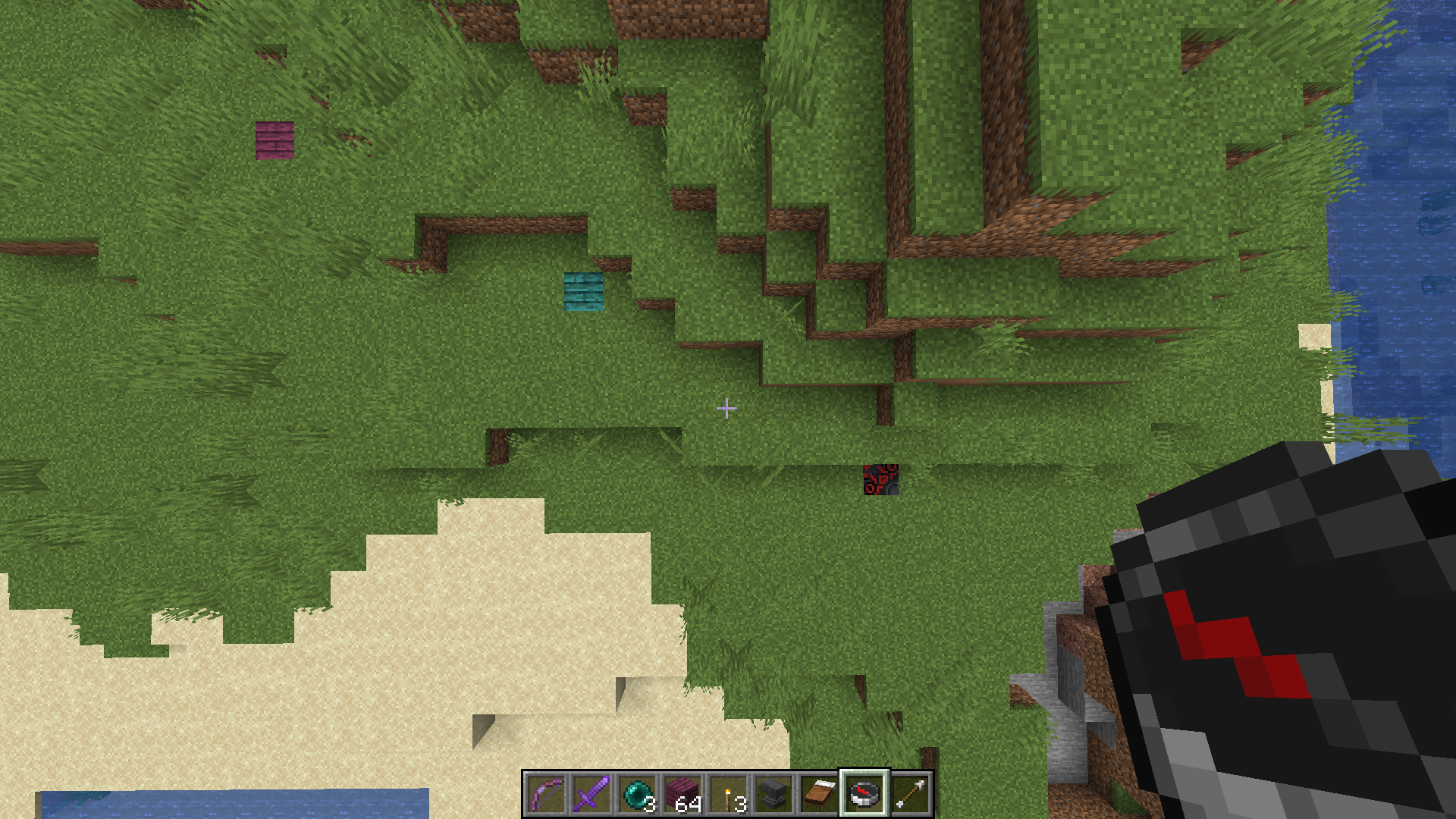 After gathering some resources, I made a compass. The strange thing is that it points to another block in another chunk.