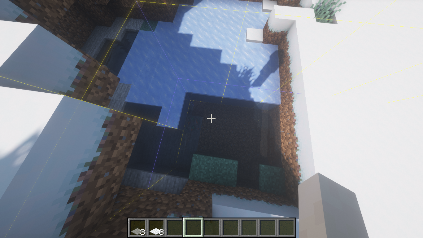 Whenever you generate ice lakes in 1.17.1, ice may not generate if that ice lake is between 2 or more chunks, creating square patterns. However, ce will start appearing shortly after generating the chunk.