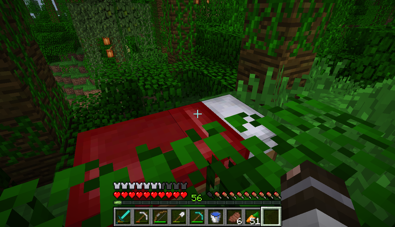 I was exploring the world, it was turning to night time, I slept in the bed and I woke up inside a leaf block.
