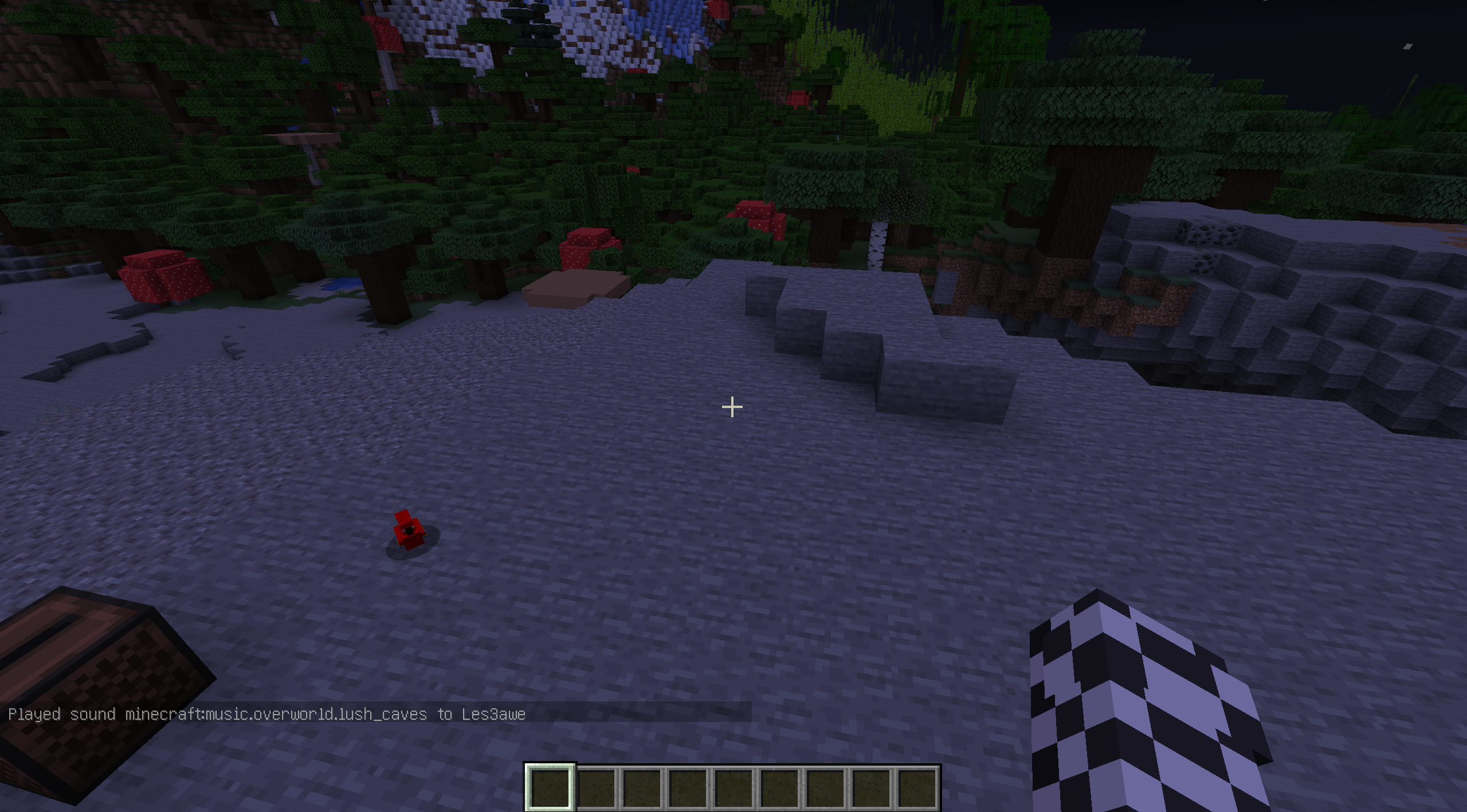 /playsound minecraft:music.overworld.lush_caves voice @aOpen the Music & Sound Options menu.