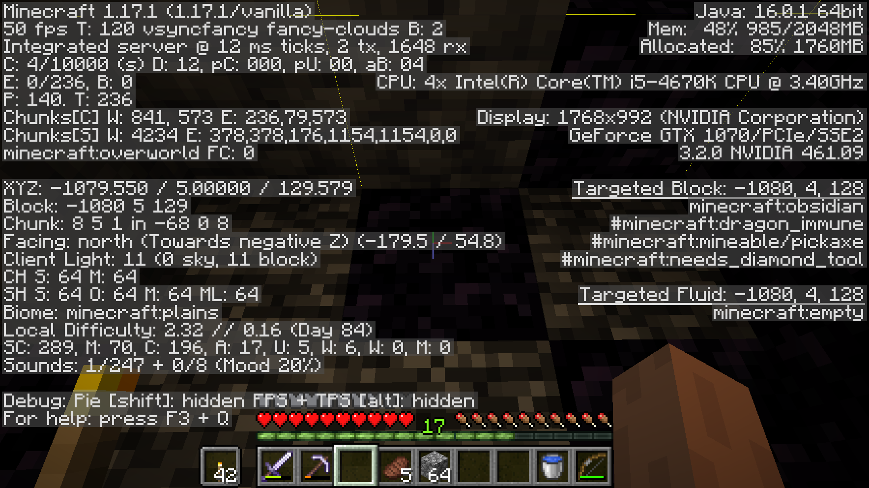 and the third is the one with the debug menu and with visible chunk borders enabled.
