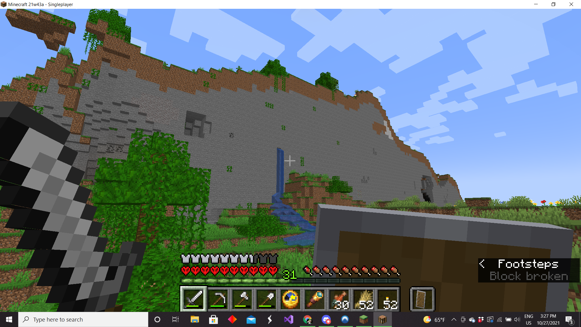 With a world started in 21w42a transitioning to 21w43a, the blending does not work as properly as it should, and there is a very bizarre chunk border that has appeared in my world.