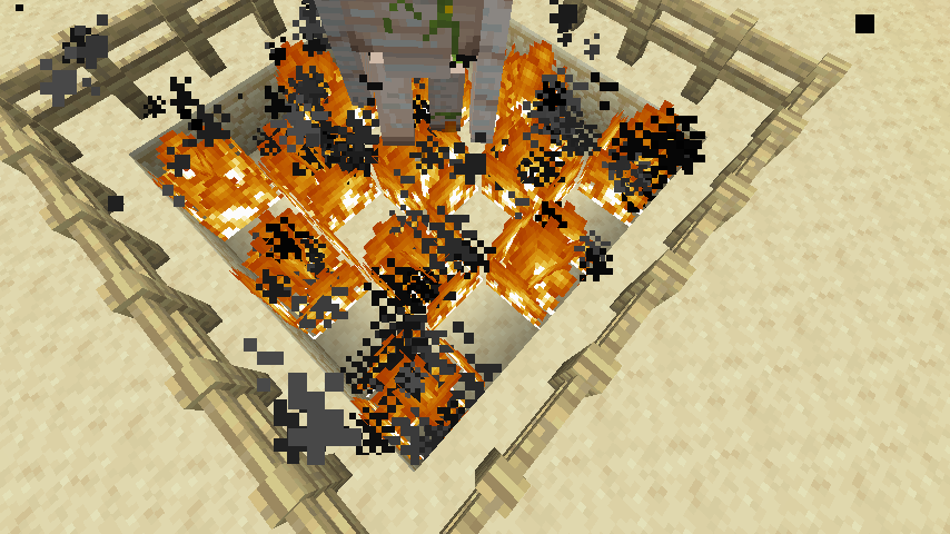 The following table lists all cases in which minecraft:block particles are generated, and fire and soul fire's behaviour for each of these cases. The expected behaviour for all of these is that no particles are produced.