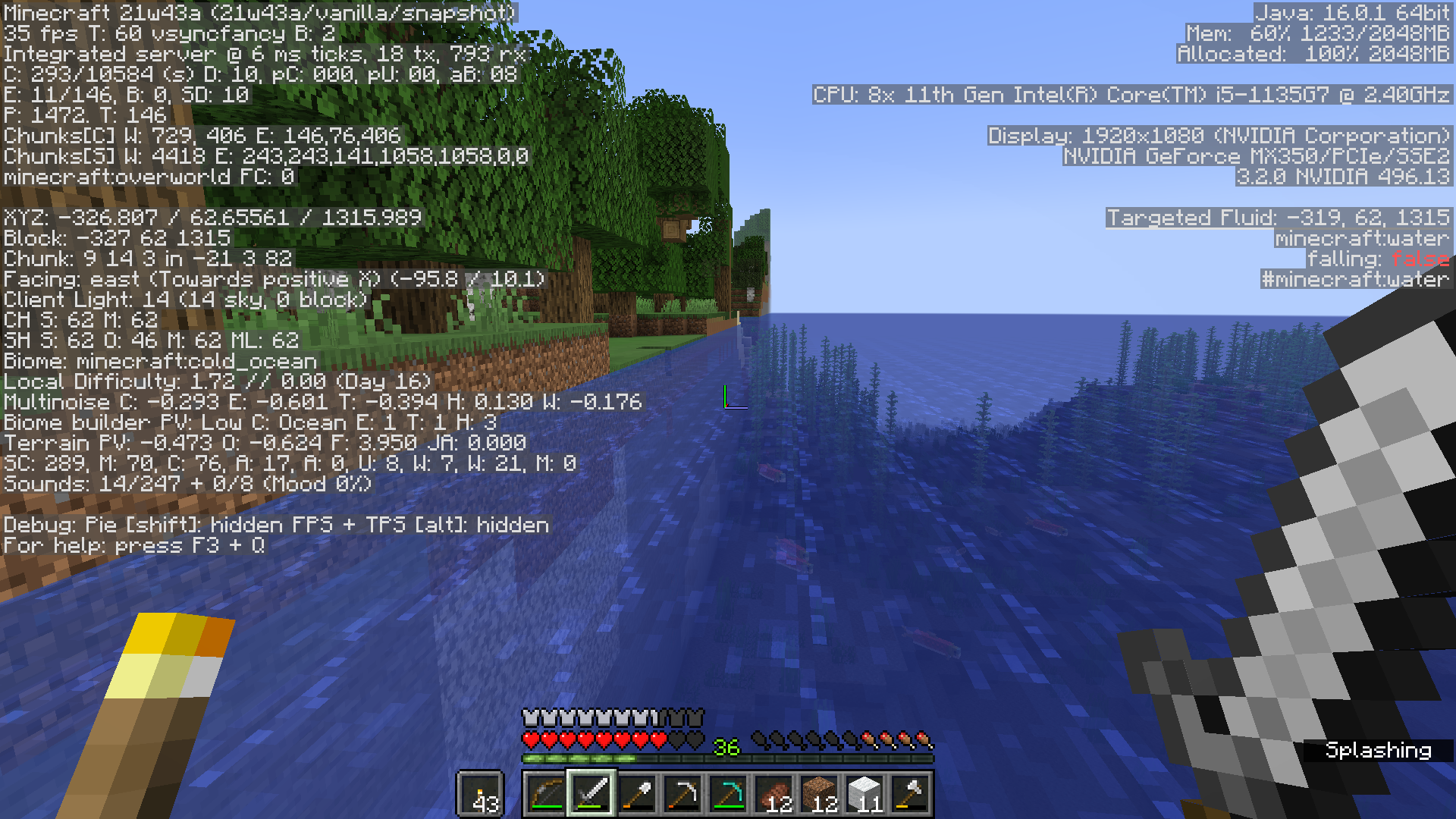 I started a world in 21w42a and updated it to 21w43a. I ended up needing to generate new chunks and noticed there was no blending active. I was mainly looking at the level of the ground between the two, especially in the ocean boarders, as I dont know how it works between oceans and much higher forests.