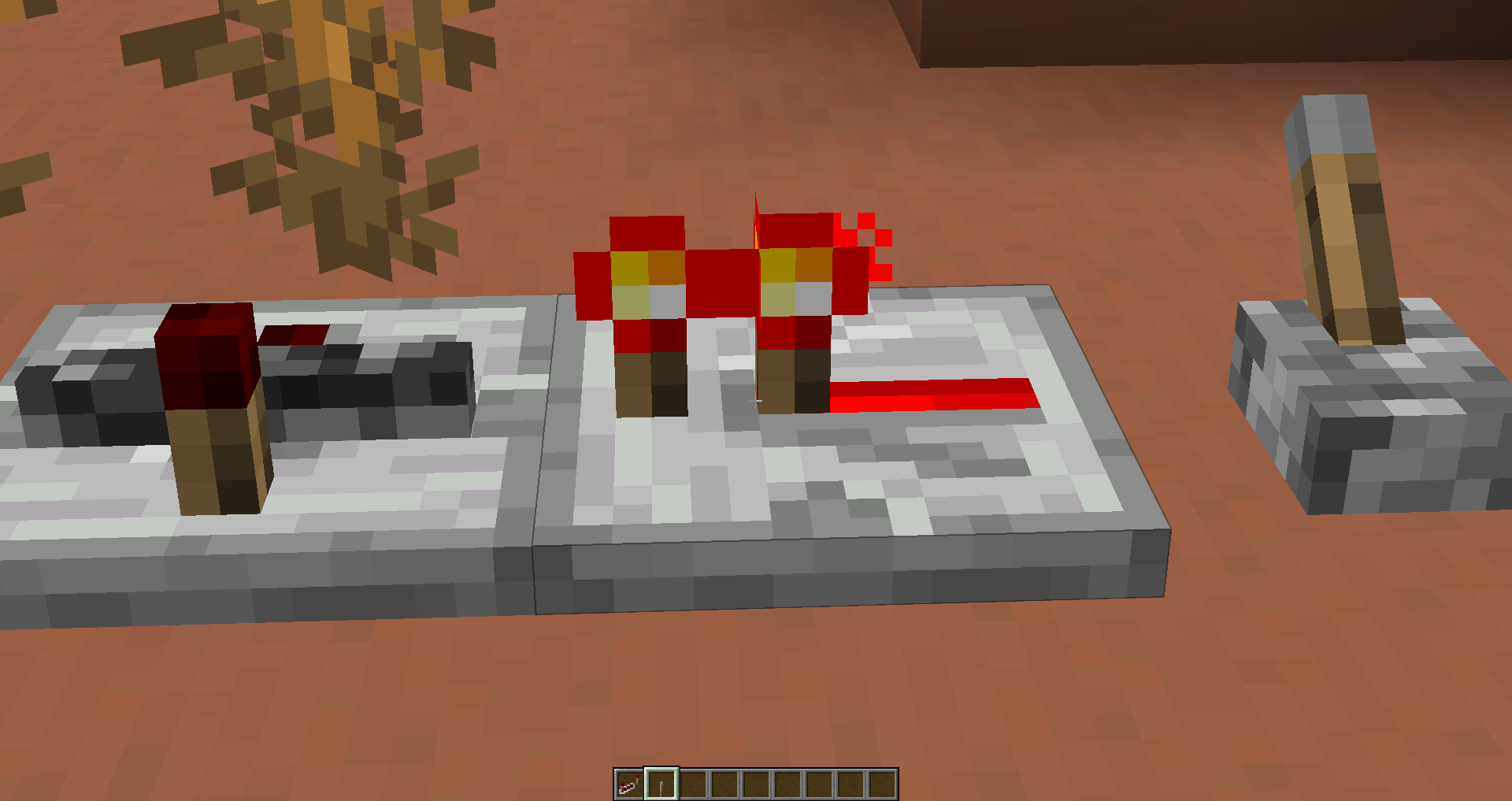 came across this when i was building with redstone, had to go into a creative world to see if it was just a glitch. When you put a redstone repeater perpendicular to another, it makes a wierd bedrock texture.
