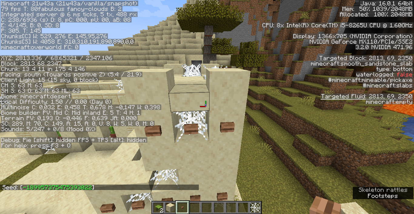 Coordinates: /execute in minecraft:overworld run tp @s 2834.40 63.00 2340.69 -70.86 -12.81Steps to Reproduce: