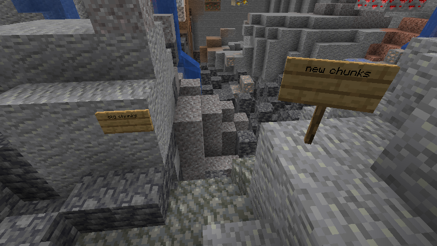 A zipped 1.16.5 world (1.16.5 is used due to blobs of deepslate not generating, making the transition much clearer) is attached to this ticket, which can be loaded in 21w43a. An area can be cleared out in the boundary between existing and new chunks to see the discontinuity.