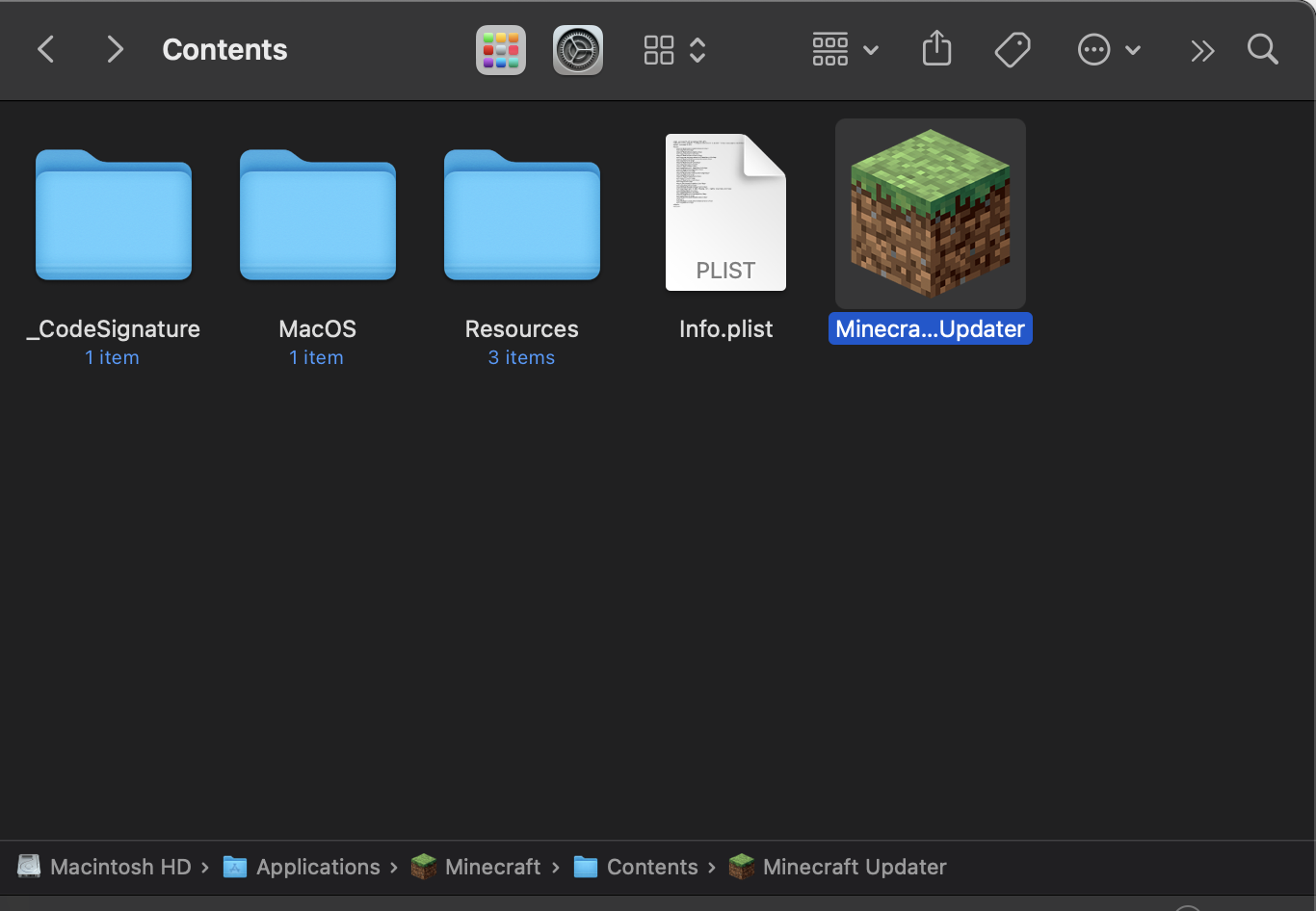 When going into the package, the file is a "Minecraft Updater" (see screenshot attached)
