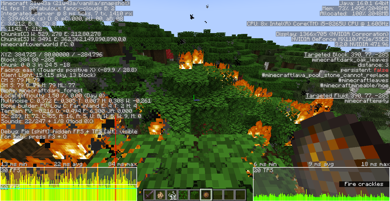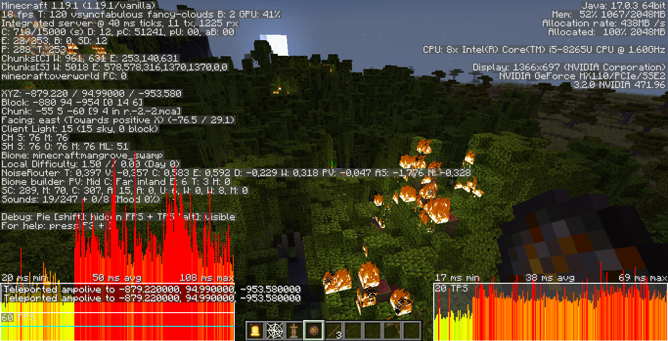 Large forest/jungle fires cause considerable lag, mainly client-side lag.