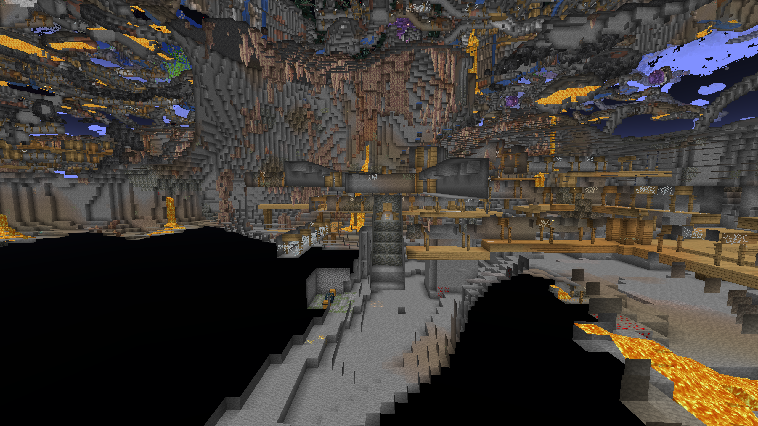 Load up seed -709494128138866206 in 1.17 at let the chunks load up at spawn. Open up the world in 21W44A, there is a mineshaft directly below the immediate chunks. It appears twice, once above Y= 0 and again below 0