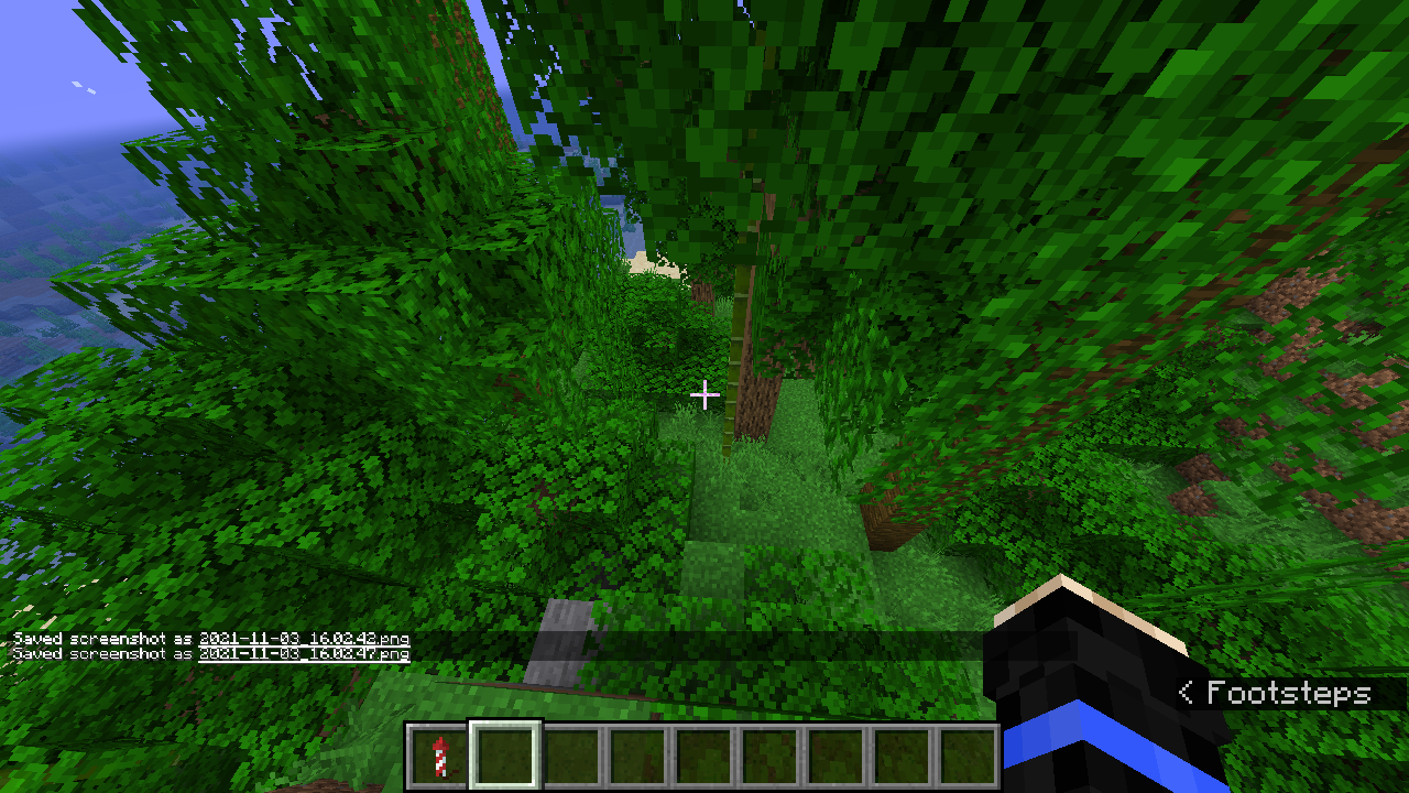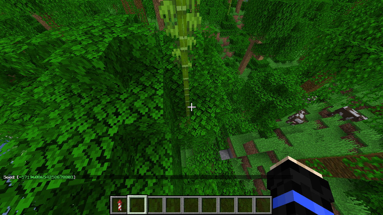 In Jungle Biomes, Bamboo may generate under a tree, leading to there being a hole in the leaves if the bamboo is tall enough.