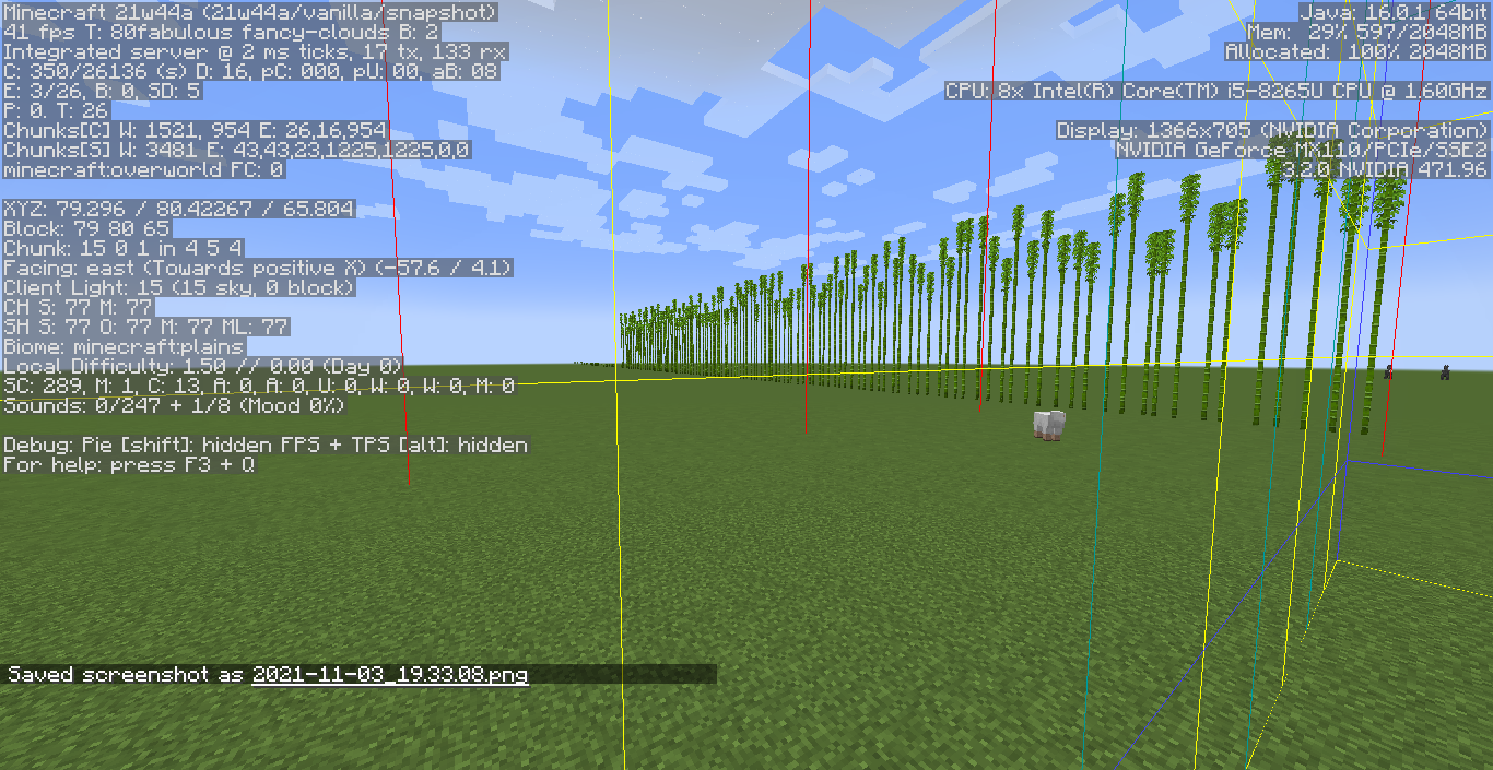 Also noting I was playing on a default generated pre-release 1 world, nothing special with the terrain. Test was conducted on a grove plateau about 130 blocks in height.