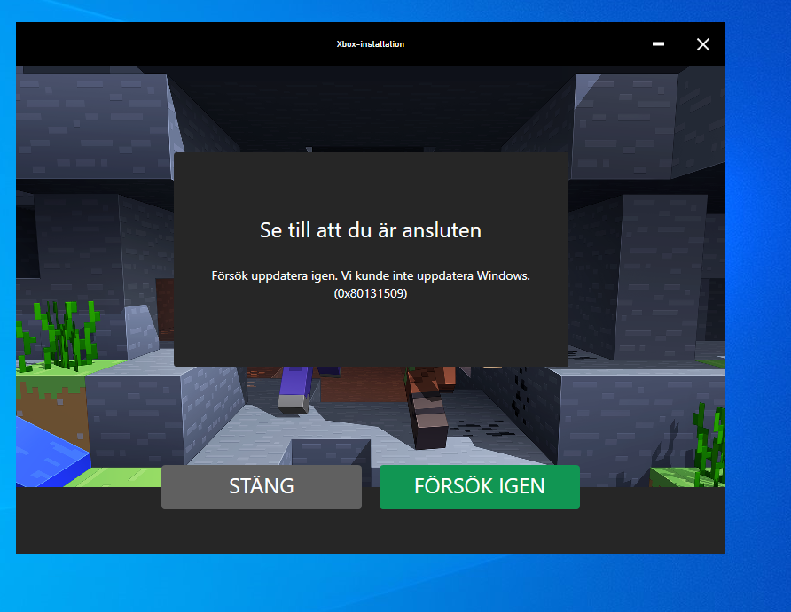 get the following error message when I try to install the game, "Make sure you are connected. Please try updating again. We could not update windows. (0x80131509)" I have updated windows.