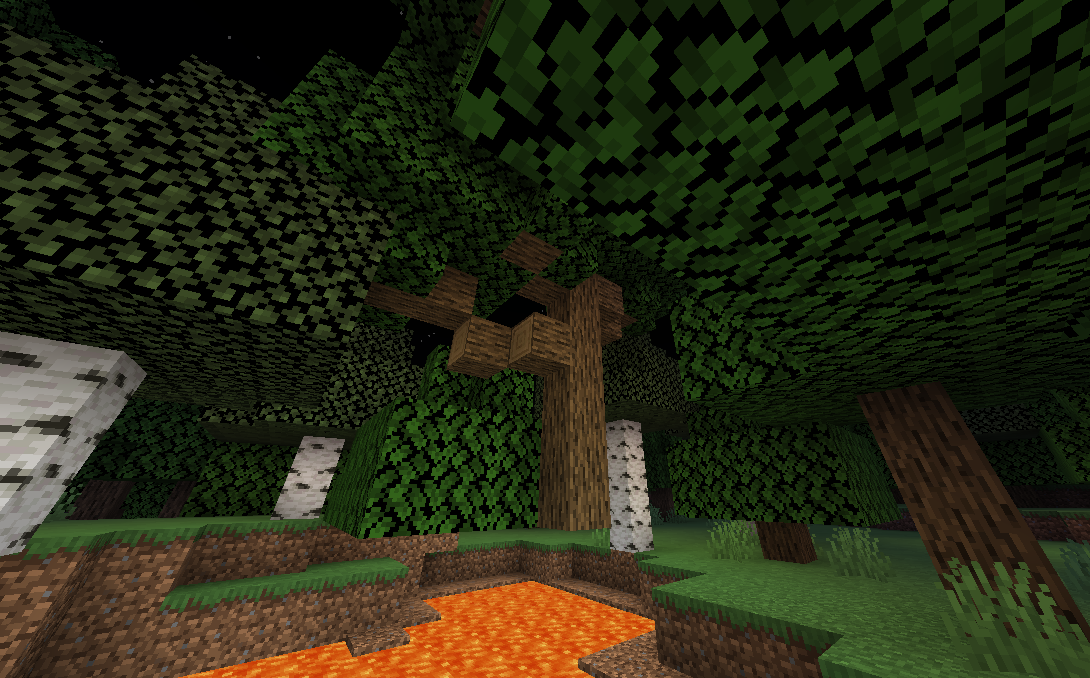 A tree floating over a lava patch, no support holding it up at all.