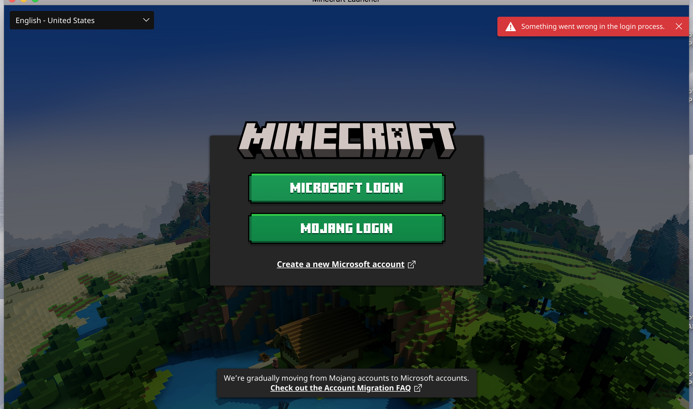 When logging into Minecraft via. Microsoft says "Something went wrong in the login process". I've tried pressing the same Microsoft button multiple times but it keeps saying the same thing. To try to fix this, I've deleted and re-downloaded Minecraft twice and connected to different wifi networks, but all these actions were in vain as it resulted in the same "something went the wrong" message.
