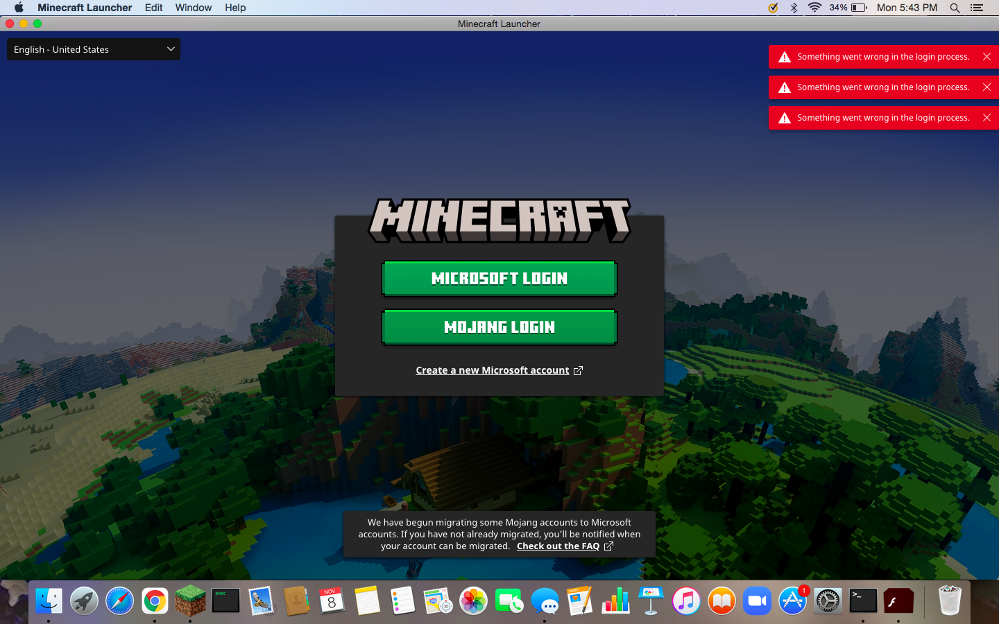 My Minecraft launcher was working after I migrated my Mojang account to a Microsoft account but a month ago it started to have me pick an option to log in with Mojang or with Mircosoft. When I click Mojang login it told me to go back and sign in with Microsoft but when I pressed the Microsoft login it said "Something went wrong in the login process." I was playing in 1.17.1 before this happened. What should I do to fix this?