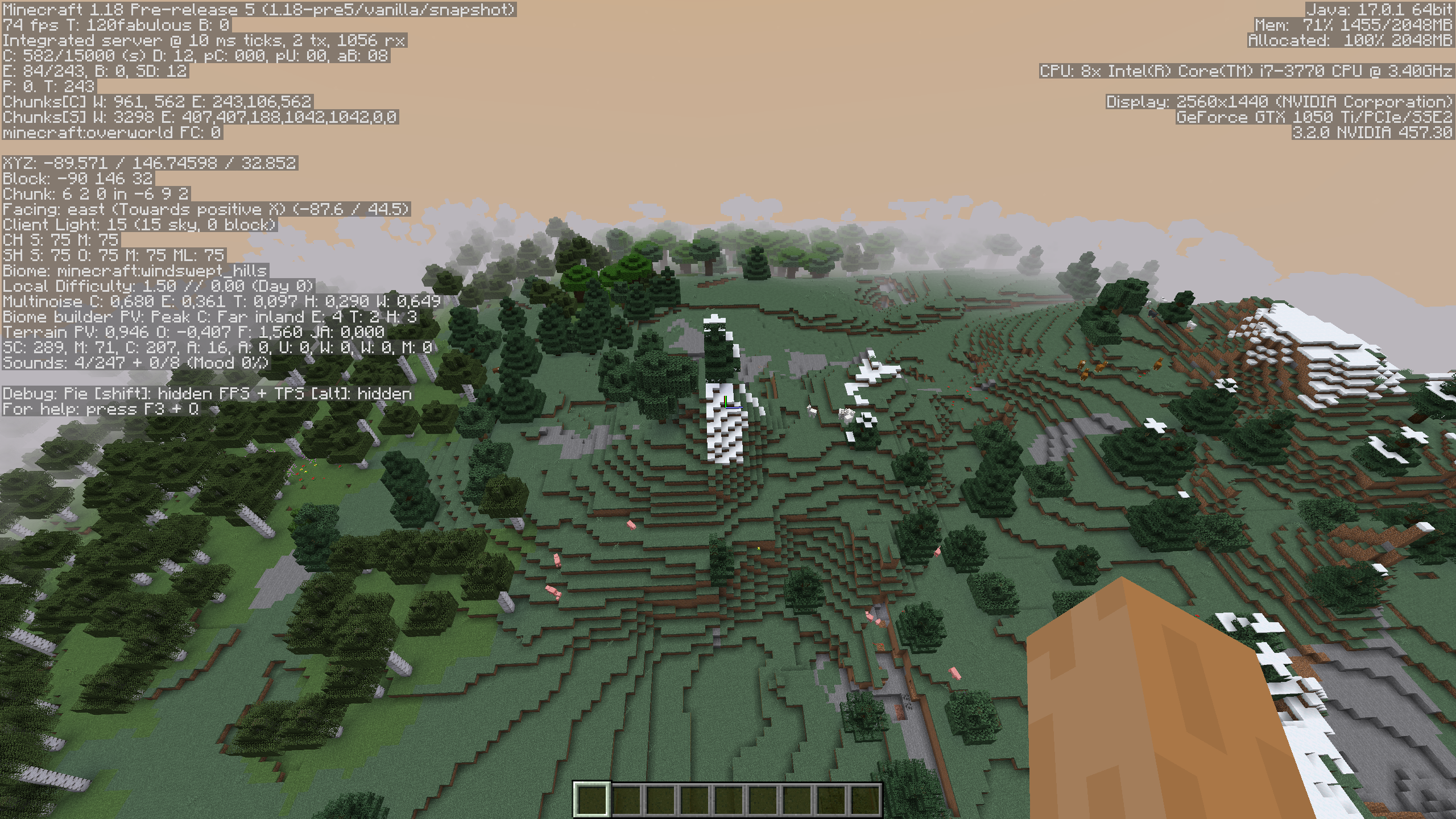 1.Create a world in 1.17.1 with seed 3. (This seed has windswept hills near spawn.)