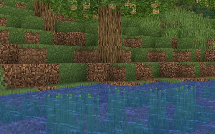 The texture of tall seagrass is sticking out of water when 2 blocks under the surface