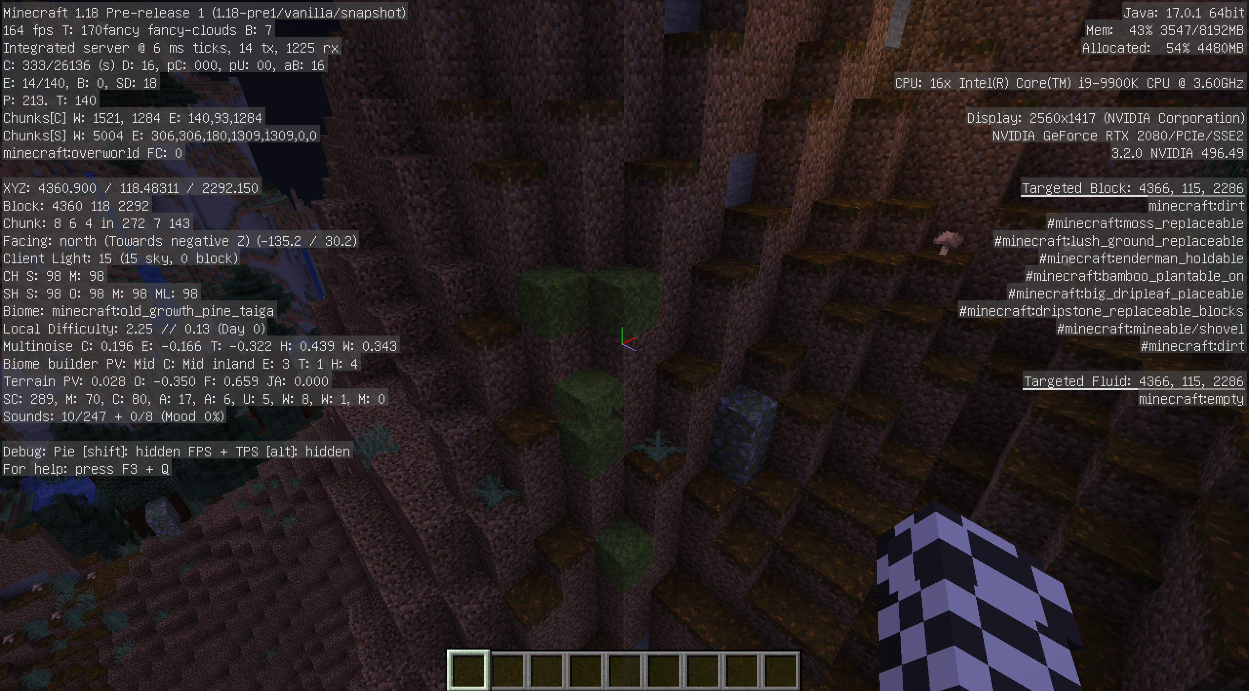 [media][media][media][media]Because the generated height is too high, the lush cave is more often submerged by aquifers, resulting in the lush cave can't generate features.