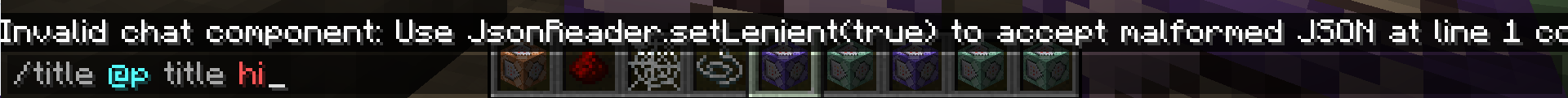 You can only use numbers with the title command. Example: /title @p title hi - /title @p title 123 This is the same for subtitle, action bar, and all the others