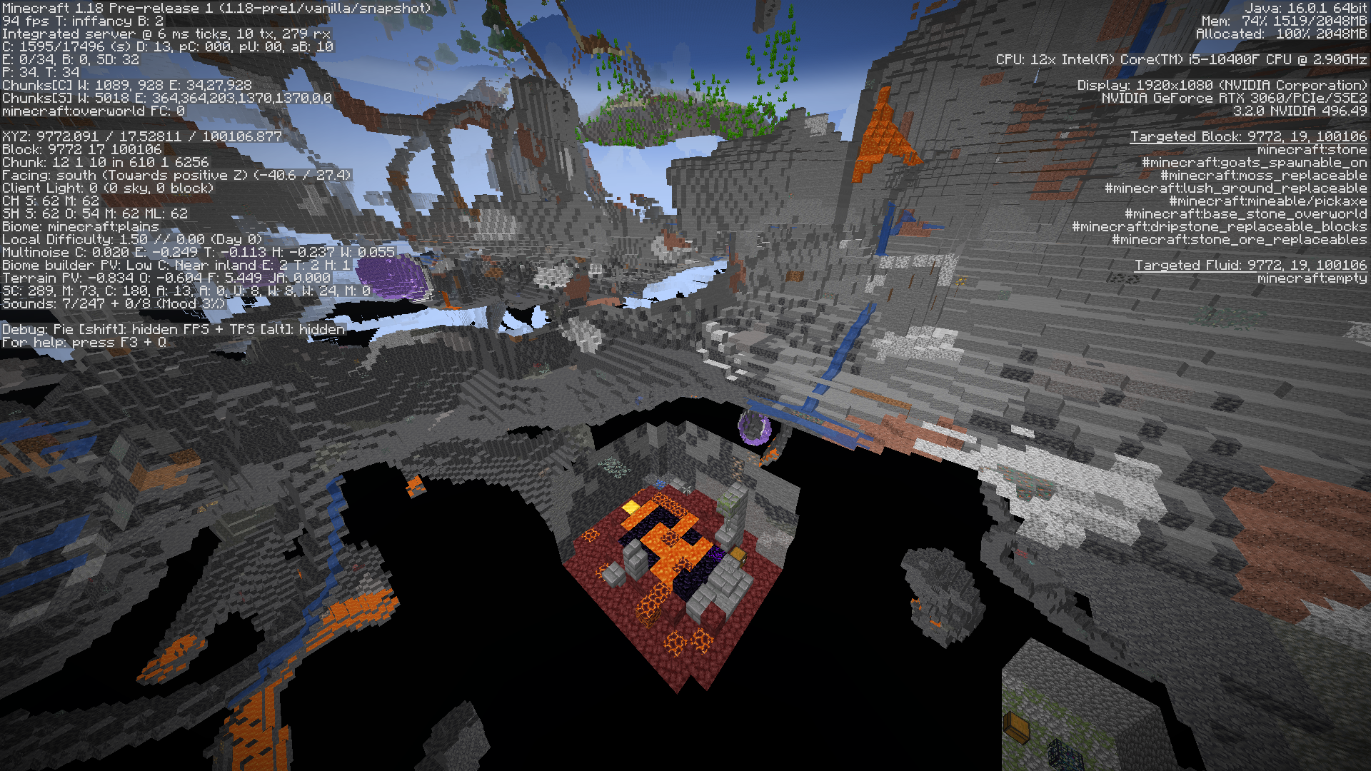 ** 3. 찾은후 tp를 했을때 그것이 지상에 없다면 관전자 모드를 사용해 지하로 갑니다.