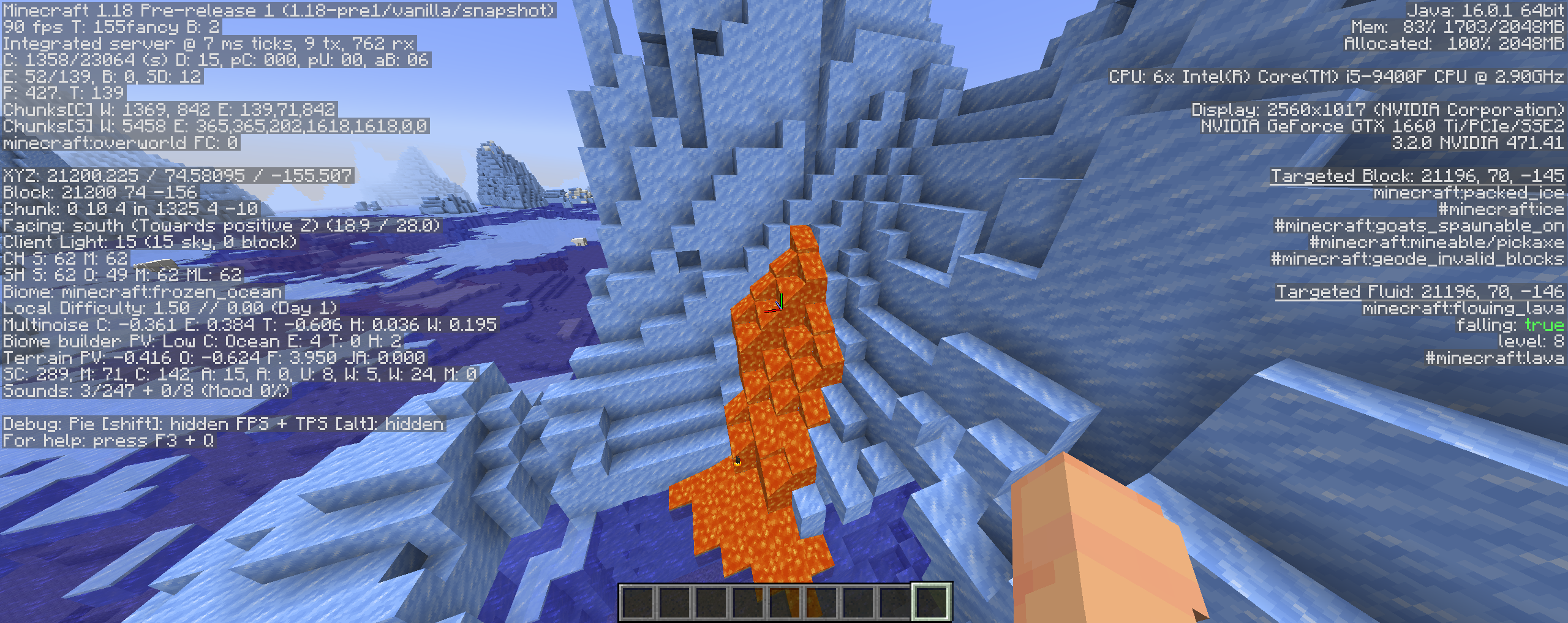 Generated a new world in the latest pre-release, and noticed that there were naturally generated lava falls in the icebergs of a frozen ocean. I would think this is a bug.