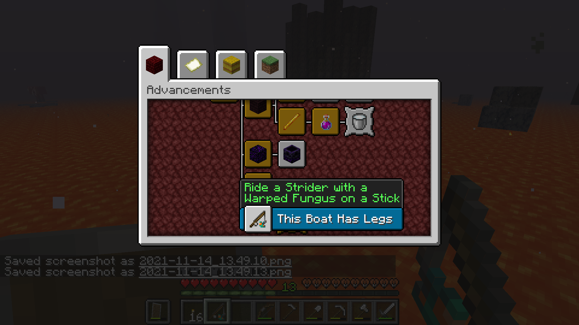 When playing Minecraft (Java) Version 1.17.1, the achievement "This Boat Has Legs" does not activate when meeting the required conditions.