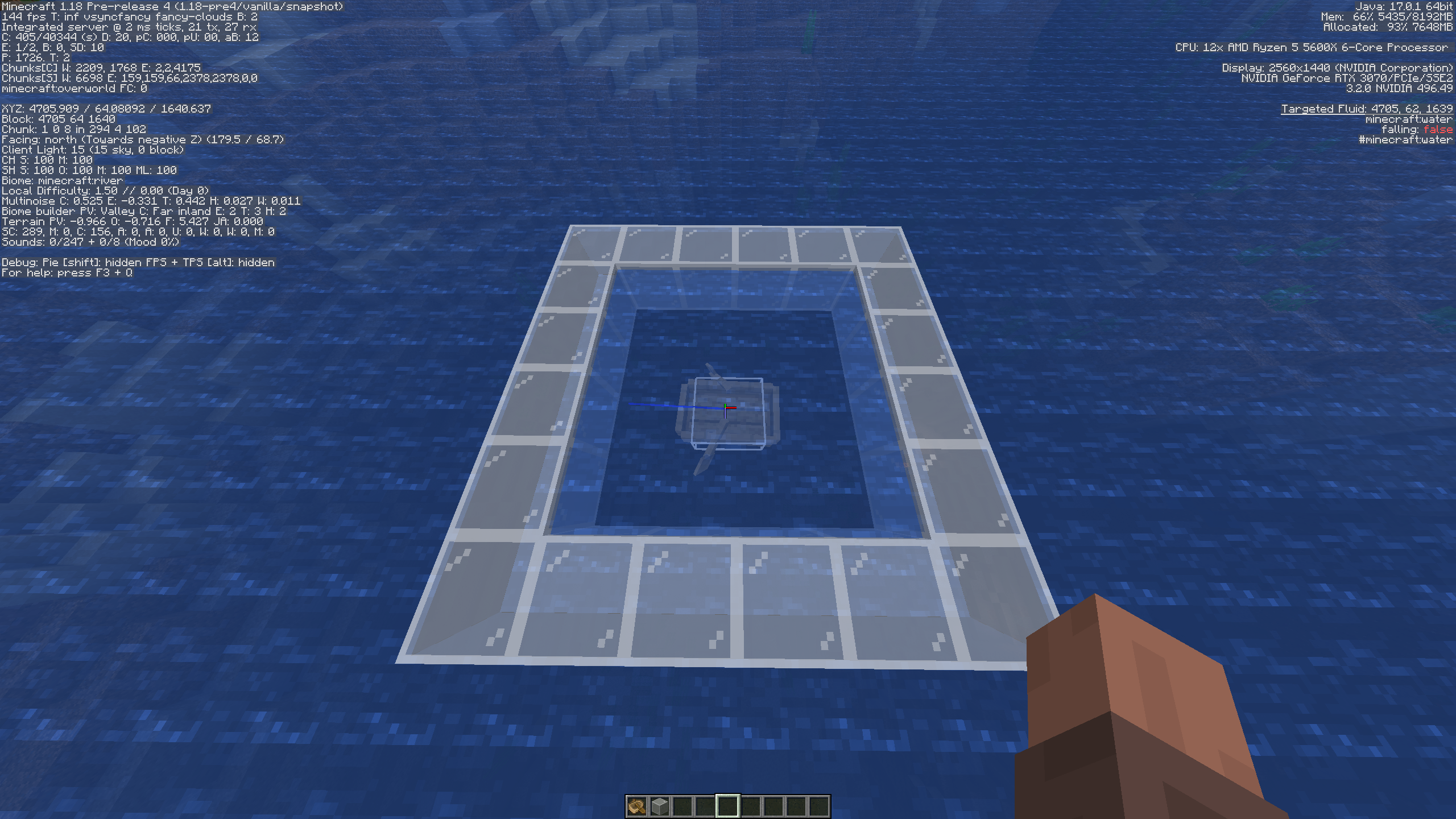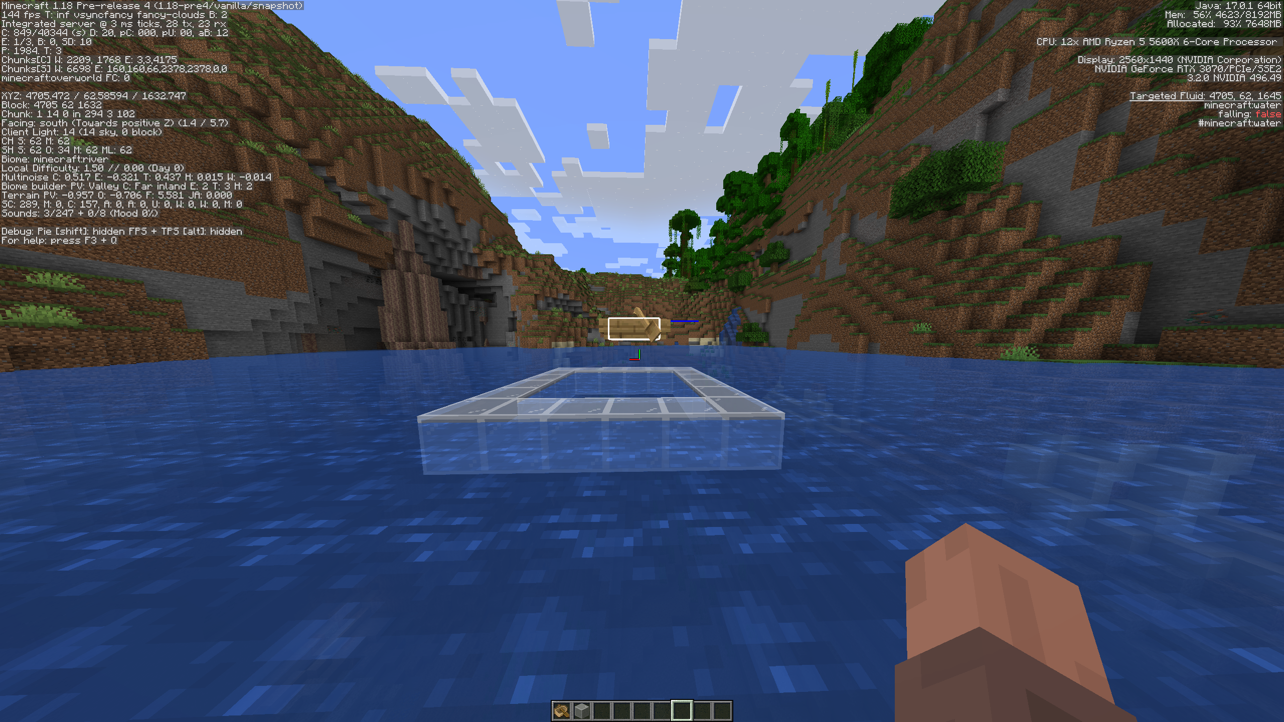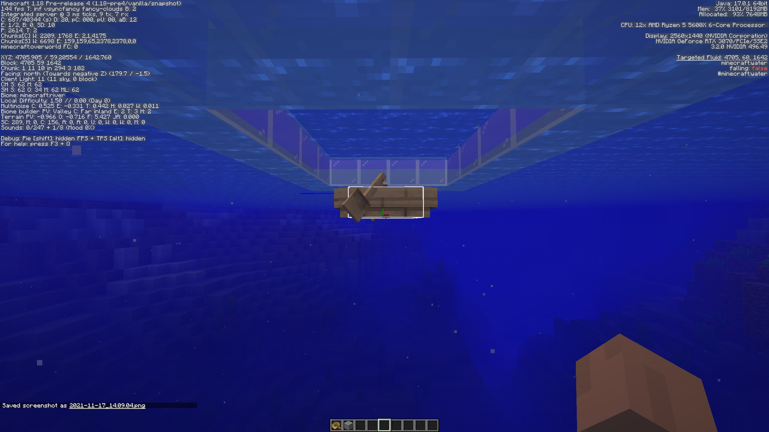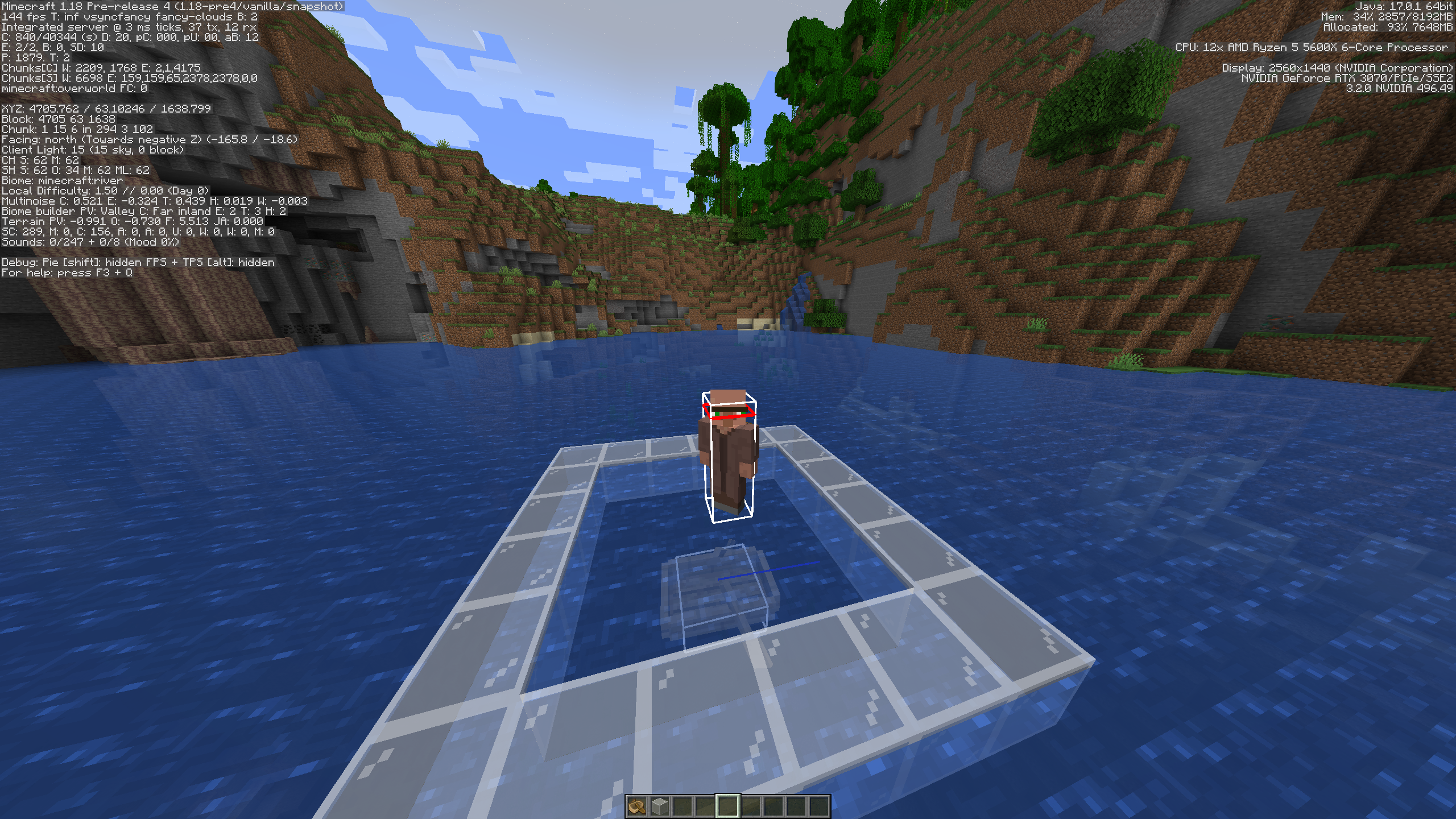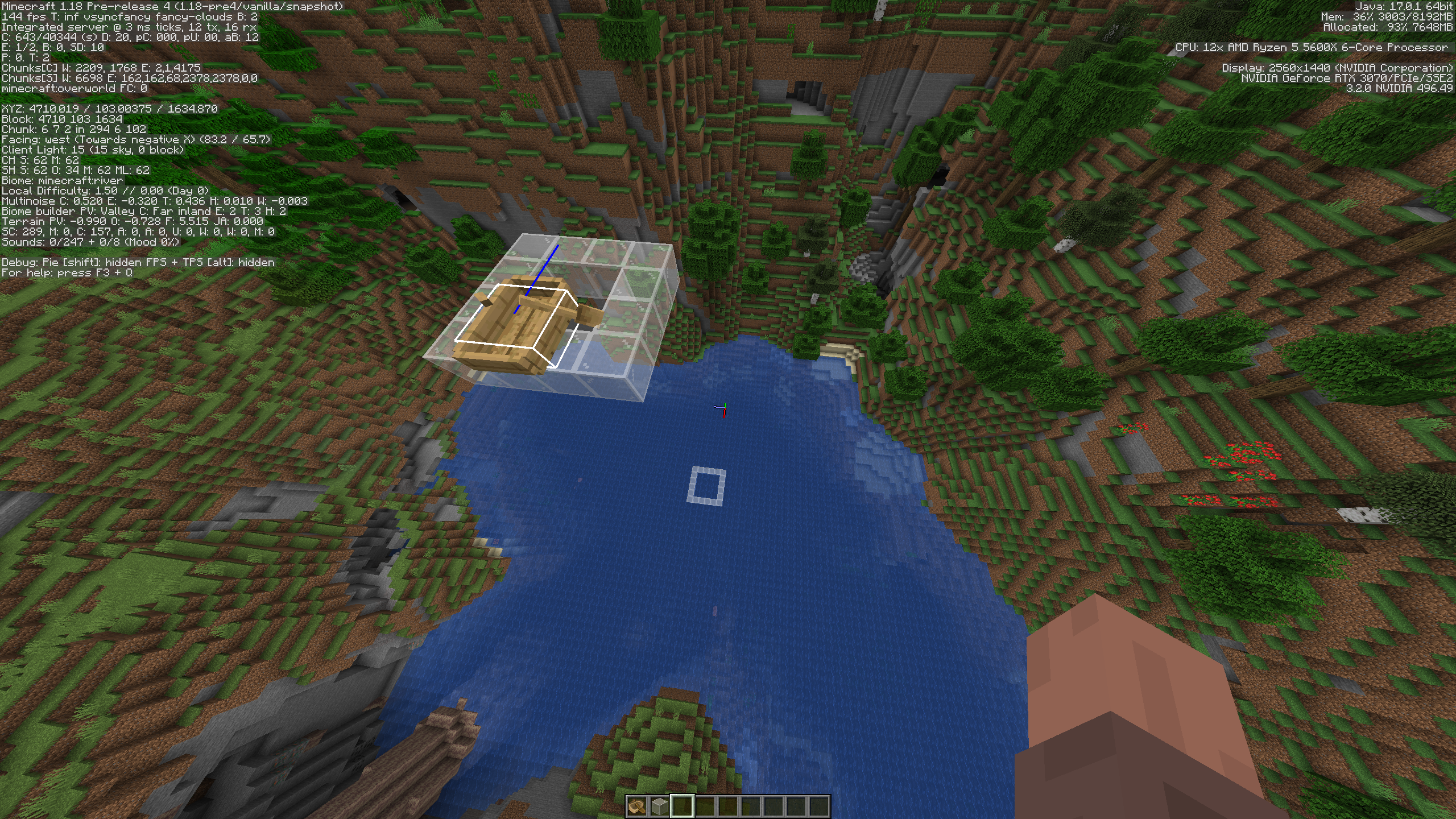 When falling from somewhere or moving the boat horizontally(on ice) while riding a boat, when you exit very quickly right before you hit blocks or liquids, the boat is in a different position in the client and server. The boat "lags" through the blocks but the rubber-bands back after a bit, unless the boat falls into water. If the boat is left above water right before hitting the water, then the boat will be stuck midair/float underwater for the client. When the client relogs then the boat is where it should be.