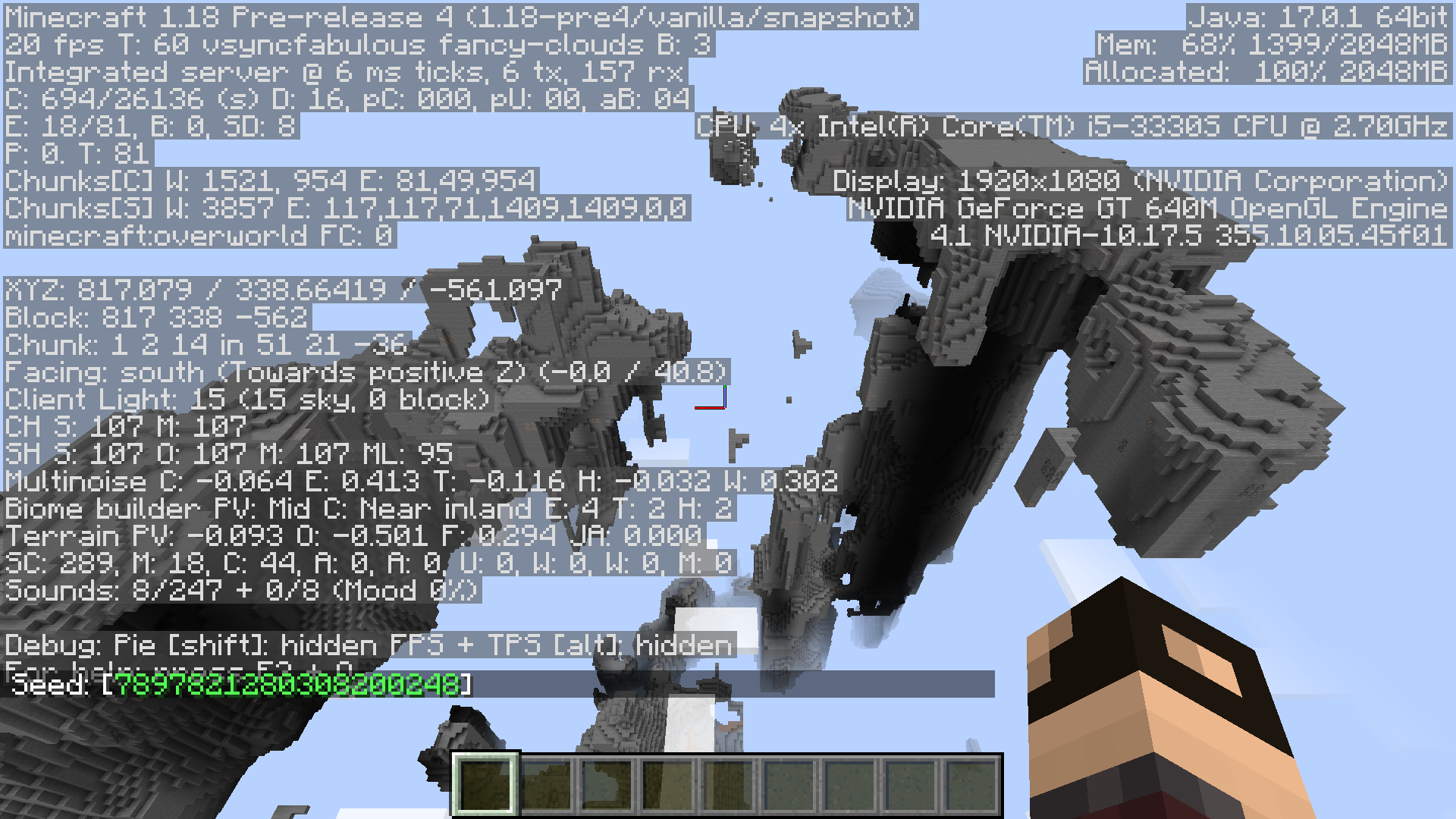 To reproduce, use the amplified world type, then use the seed 7897821280308200248 and run the following command: