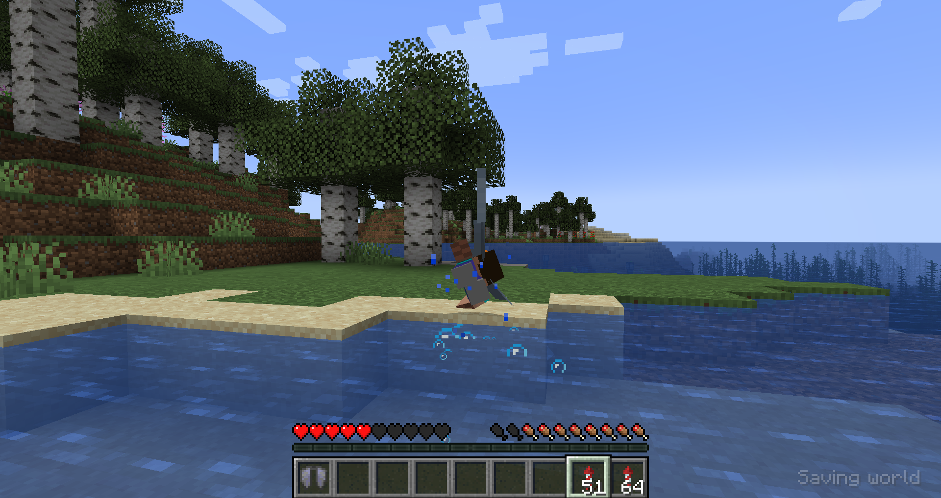 Aim down while flying at a large body of water (like an ocean) at an angle so that the water will stop you before you hit the bottom (blocks). The angle is very flexible. As long as you do not hit blocks, this bug will/should occur.