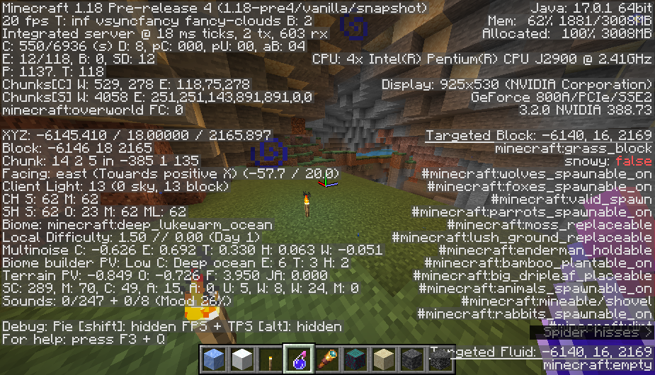 hi. i download 1.18 pre-4 and create a new creative world and start to walk around it. i go to a amazing cave and go up to y=18, but i found a lot of GRASS BLOCKS! top of those grass blocks completely covered by stone! check the screenshot.