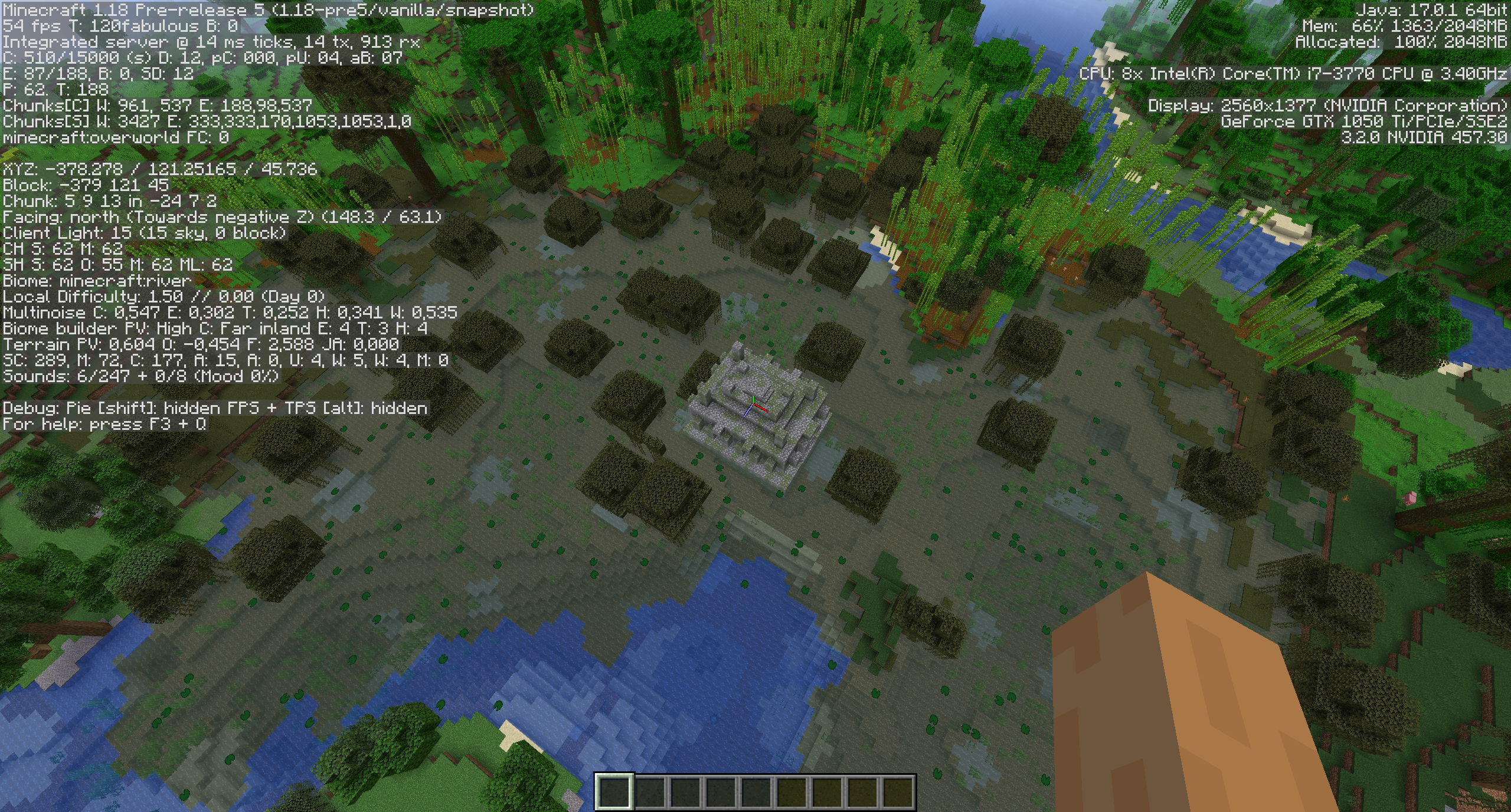 MC-241216 has a 1.17.1 world save "S3-1171.zip" (direct link) that exhibits this issue after upgrading. It generates a jungle temple in a swamp at -394 21. No jungle biome is found here after upgrading.