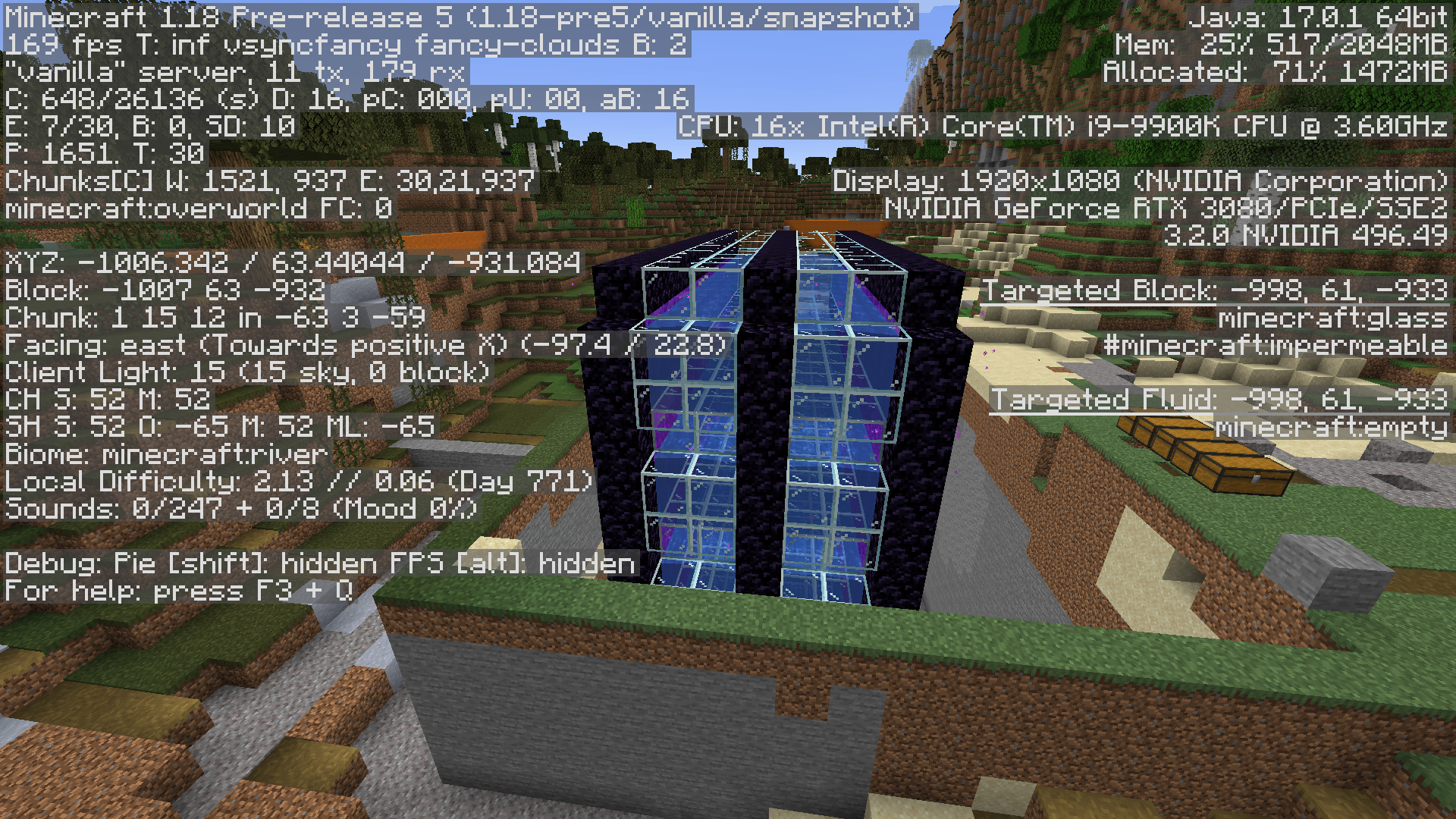 Then i went to single player to see what's happening. I used fill commands to dig a very big hole in 2 different biomes (river, ocean) and drained all water near me.