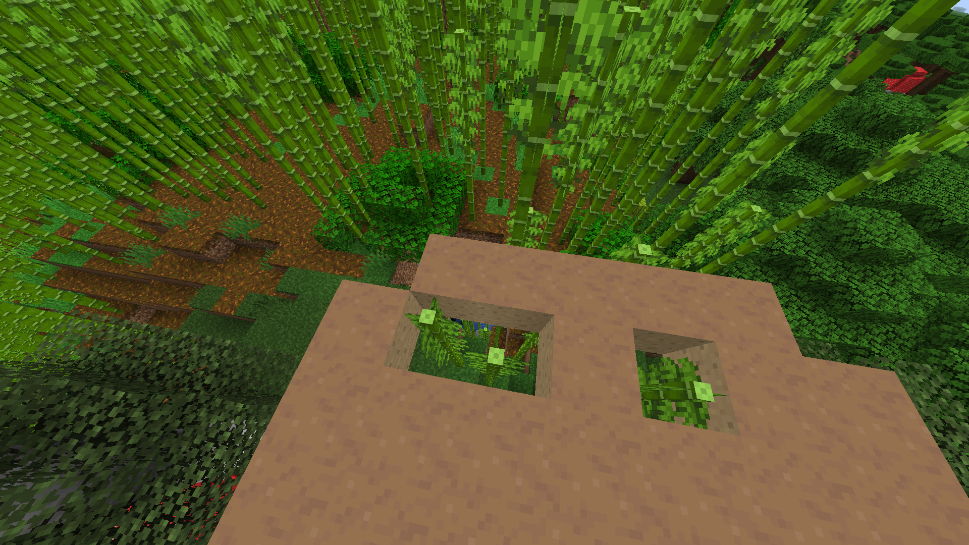 I found a bamboo that looked like it was growing on a mushroom so I got closer and saw that it was growing from the ground and a mushroom was growing inside it. After a while the bamboo that was above the mushroom broke and dropped items.