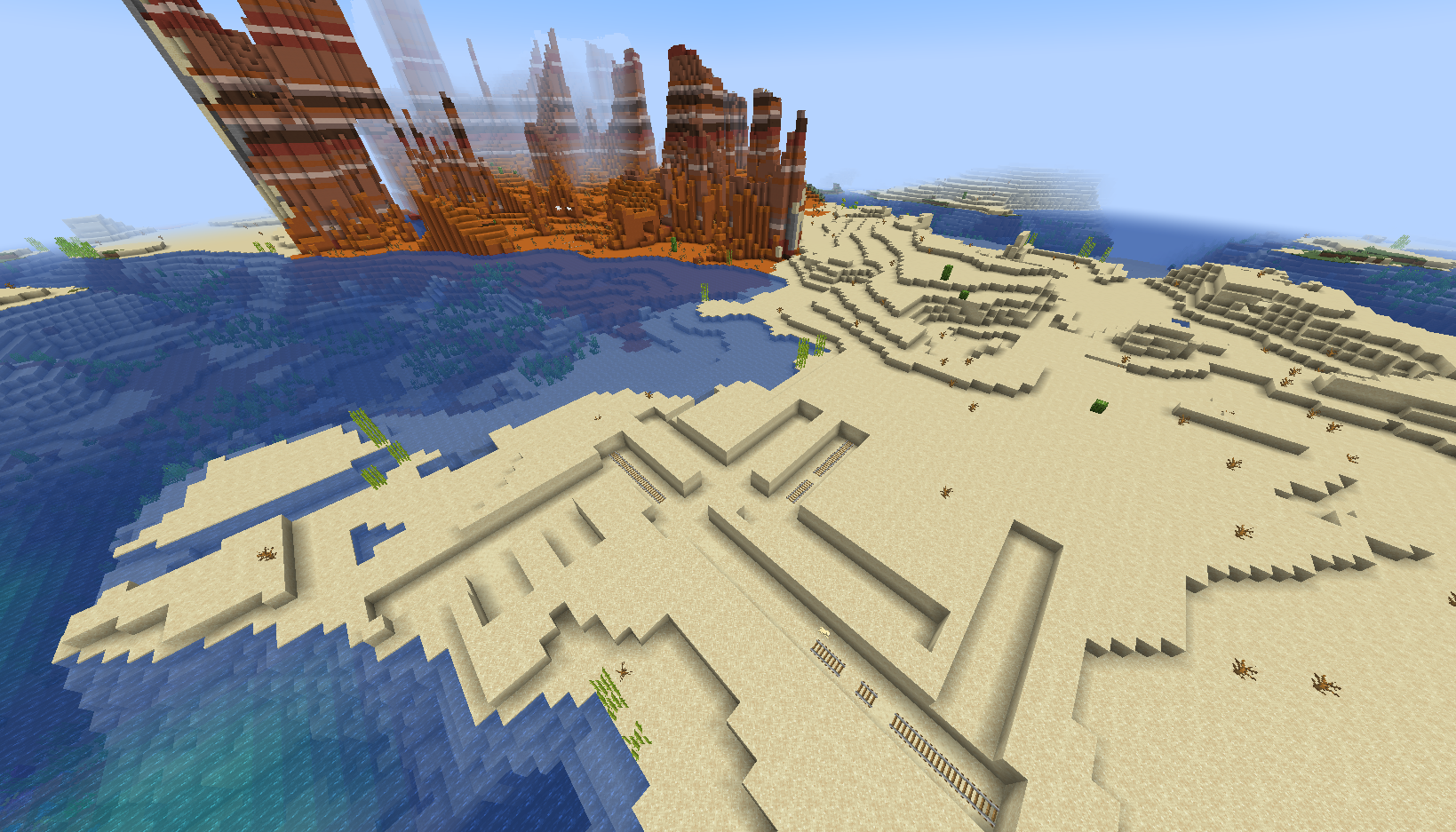 Exposed mineshaft tried to generate in the desert near the badlands biome, generating the outline and a few rails. It isn't connected to any of the actual badlands mineshafts, nor has a coninuation below