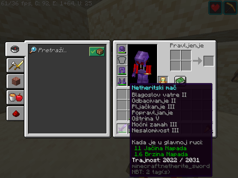 I am from Bosnia and Herzegovina,and i know Bosnian and Serbian language.There are bug with Netherite Sword.Armor are correct translated (for example:Netherite Chestplate:"Nederajt oklop").Netherite Sword on Bosnian are wrong translated.Its now "Netherite mač",but its need to be "Nederajt mač".