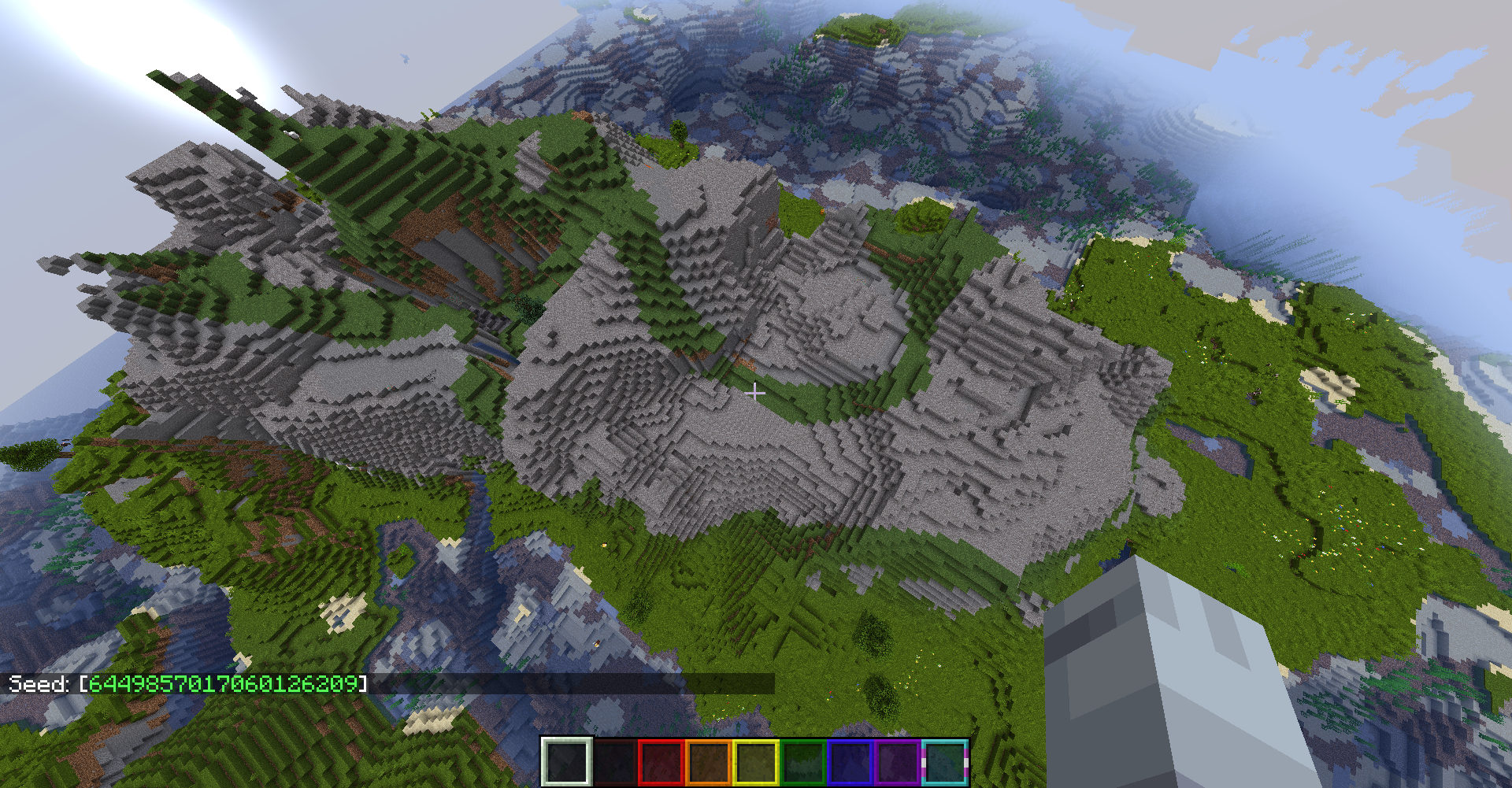 Grass blocks seem to generate in shapes similar to what calcite generates like in stony peaks in windswept gravelly hills biomes. Pretty sure this is unintentional. This is right at spawn so I don't need to give coordinates.