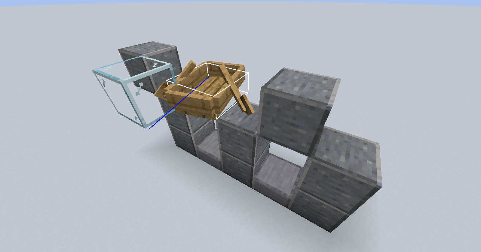 The block above the slab will stop the player from moving, while the boat will cause the player to glitch into the boat or to step up the stair and immediately be thrown back