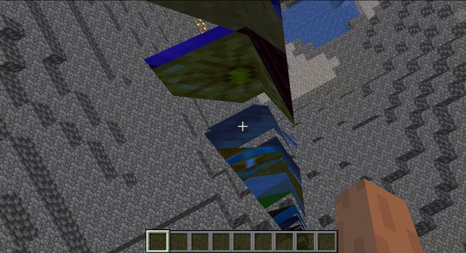 The First Time I PLayed 1.18 And Checked Underground I Found Some Wierd Spikes On The Ground Then I Check Where Is Coming From, Its From A Water Source! When I look closly its showing all the textures of the block.