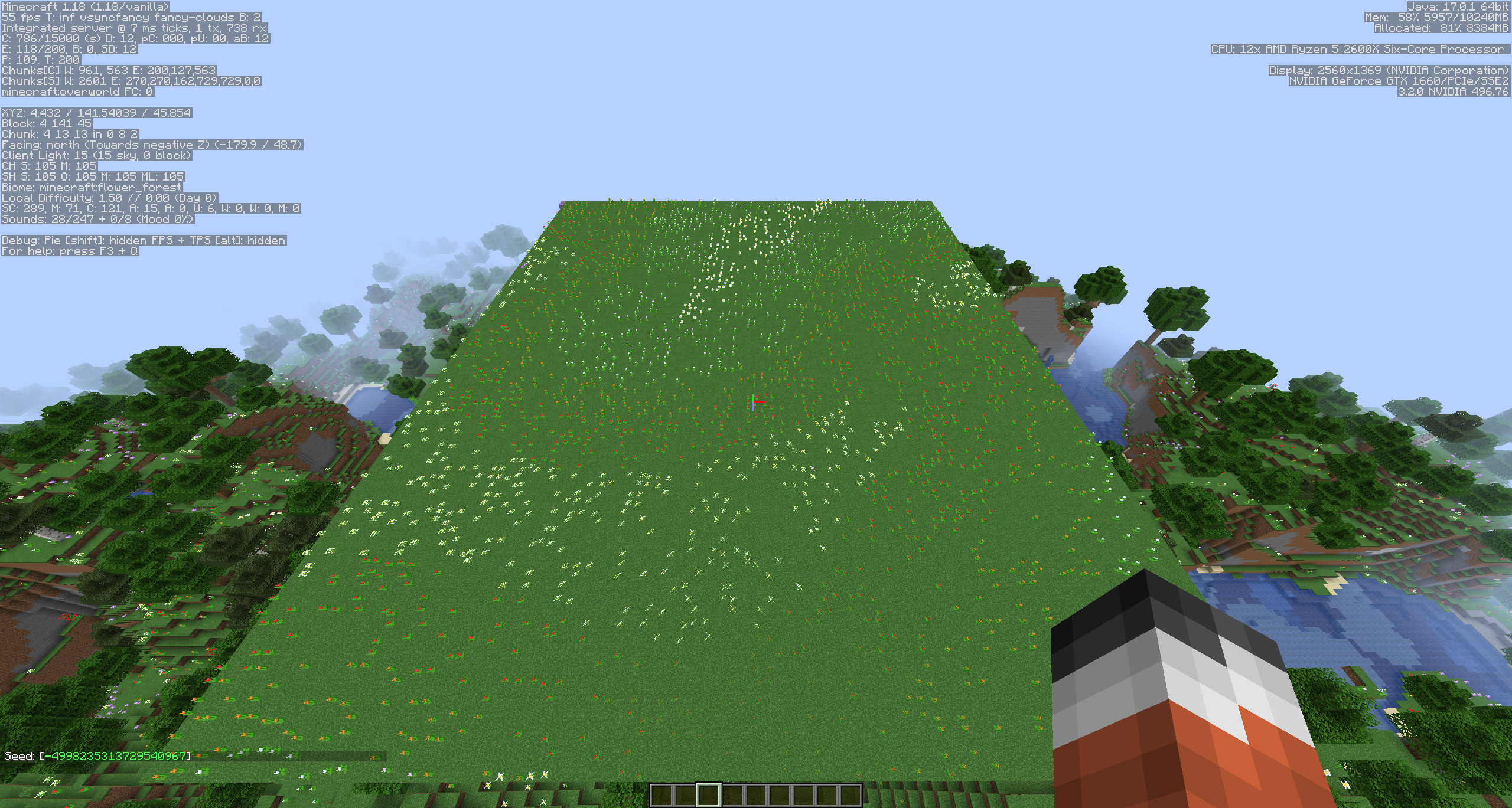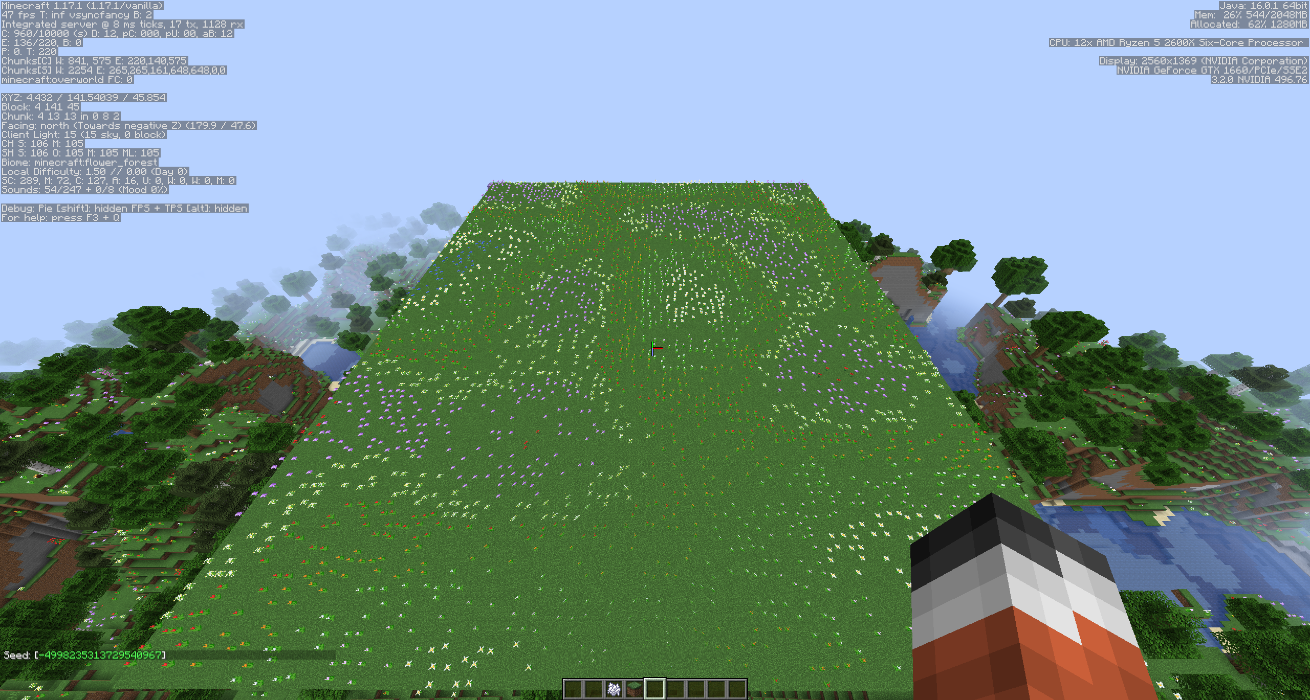 I have multiple automatic flower farms in a flower forest. In previous versions, if you bone meal a grass block in a flower forest biome and get flower, that is the flower you will get every time you bone meal that block, it does not change. This was mentioned in ilmango's flower farm video. These farms have worked from 1.14 to 1.17; they still work in 1.18 however, the type of flower you get completely changes this, I've recreated this in multiple seeds (attached below). I did this by generating a random world with only the flower forest biome. Then used command blocks to remove all grass and tall grass centred around 0,0 then spammed bone meal. The position of the flowers has evidentially changed between versions. I also believe that cornflower (the blue) flowers do not spawn, if they do it seems to be incredibly rare.
