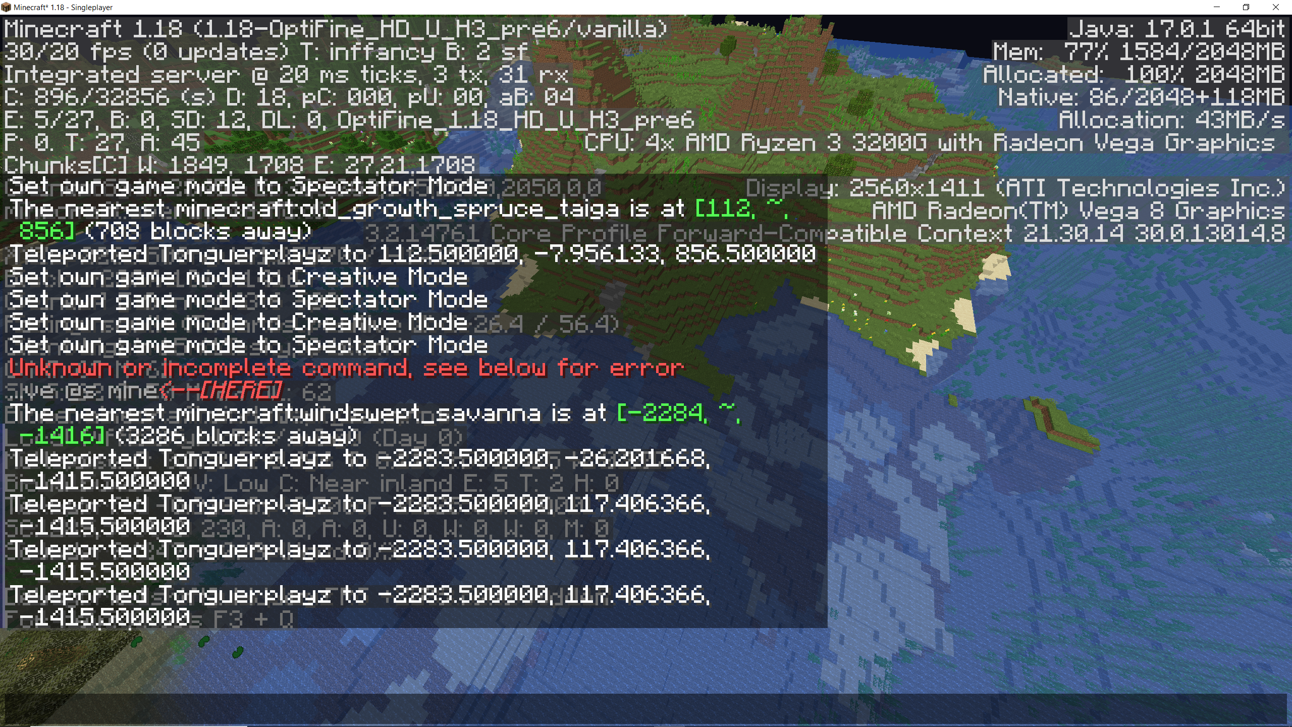 Did /locate and am in a biome that clearly isnt there even shows on biome thing in f3