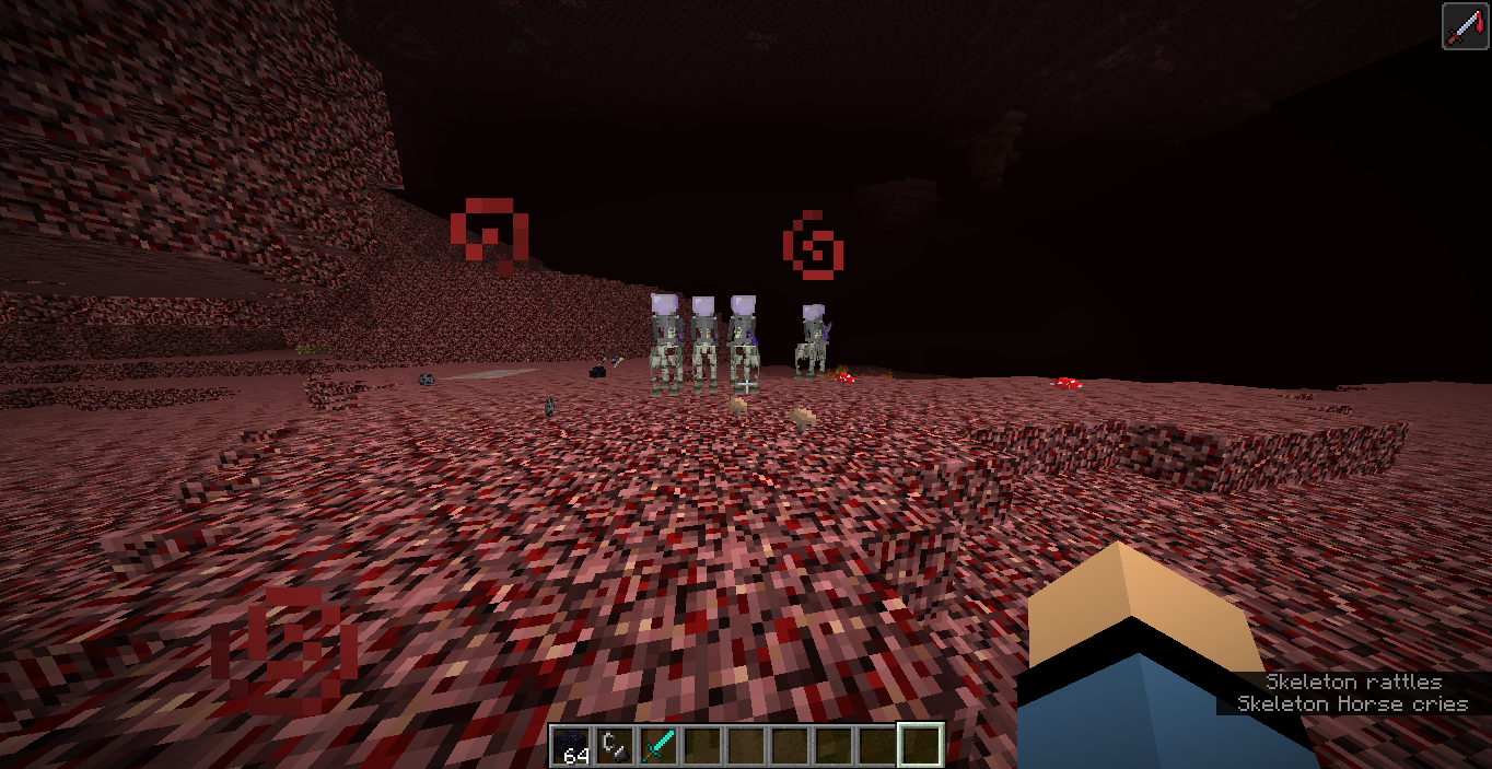 Before 1.11, Skeleton Traps that were activated in the Nether would spawn mostly Wither Skeletons instead of regular Skeletons riding the Horses. Since the first 1.11 snapshot (16w32a), they no longer have this behavior, still occurring in the most recent versions of the game.
