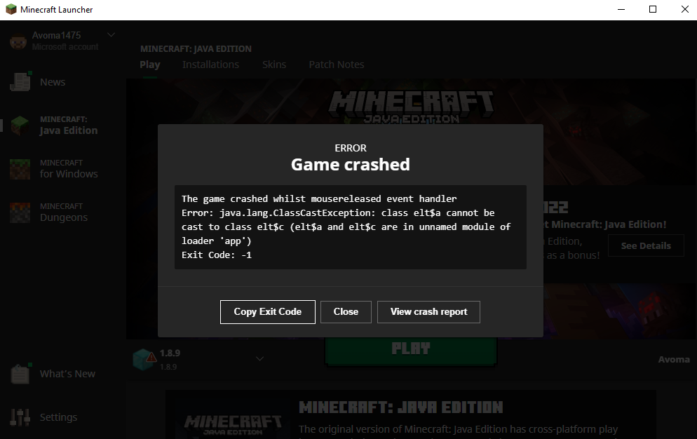 java.lang.ClassCastException: class eec$a cannot be cast to class eec$c (eec$a and eec$c are in unnamed module of loader 'app')