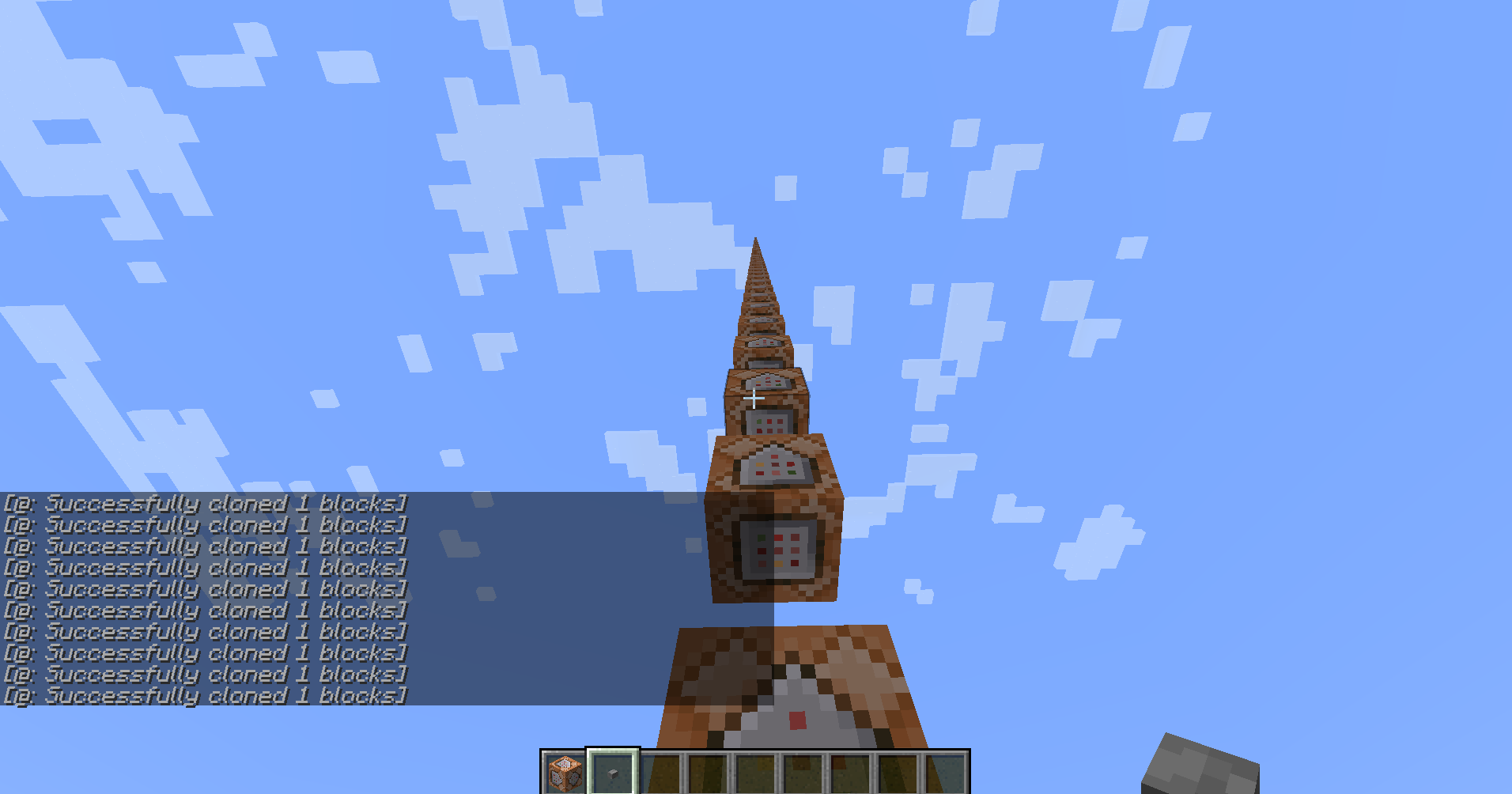 The command block is cloned infinitely upwards every other block (see screenshot).