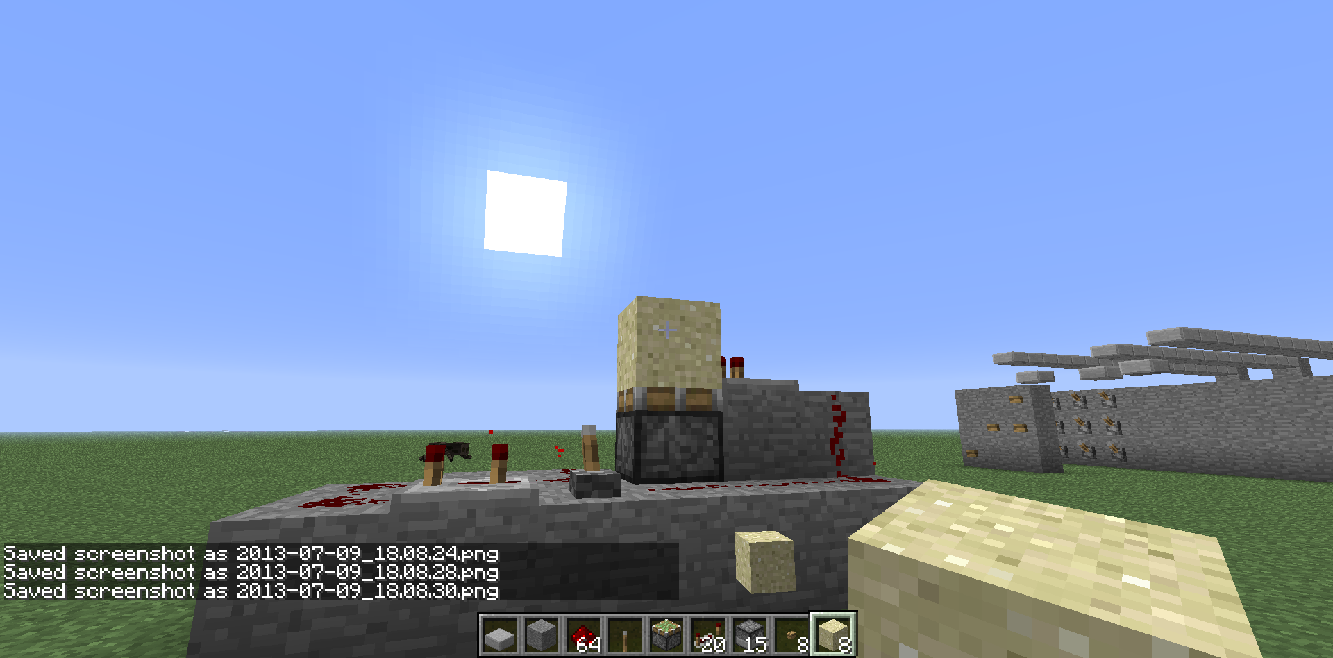 I expected all the sand to just fall back down, but the sticky piston pulled one sand and the other fell into the same block.