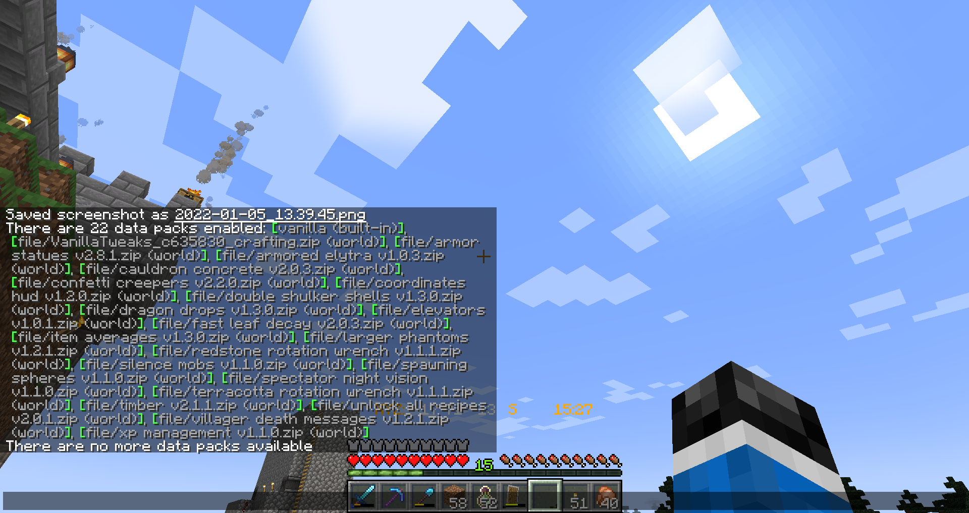 Please attach a screenshot of your F3 debug screen as well as a screenshot after running /datapack list