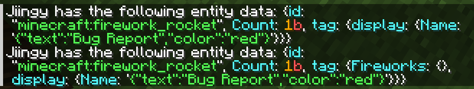 /give @p minecraft:firework_rocket{display:{Name:'{"text":"Bug Report","color":"red"}'}} 16