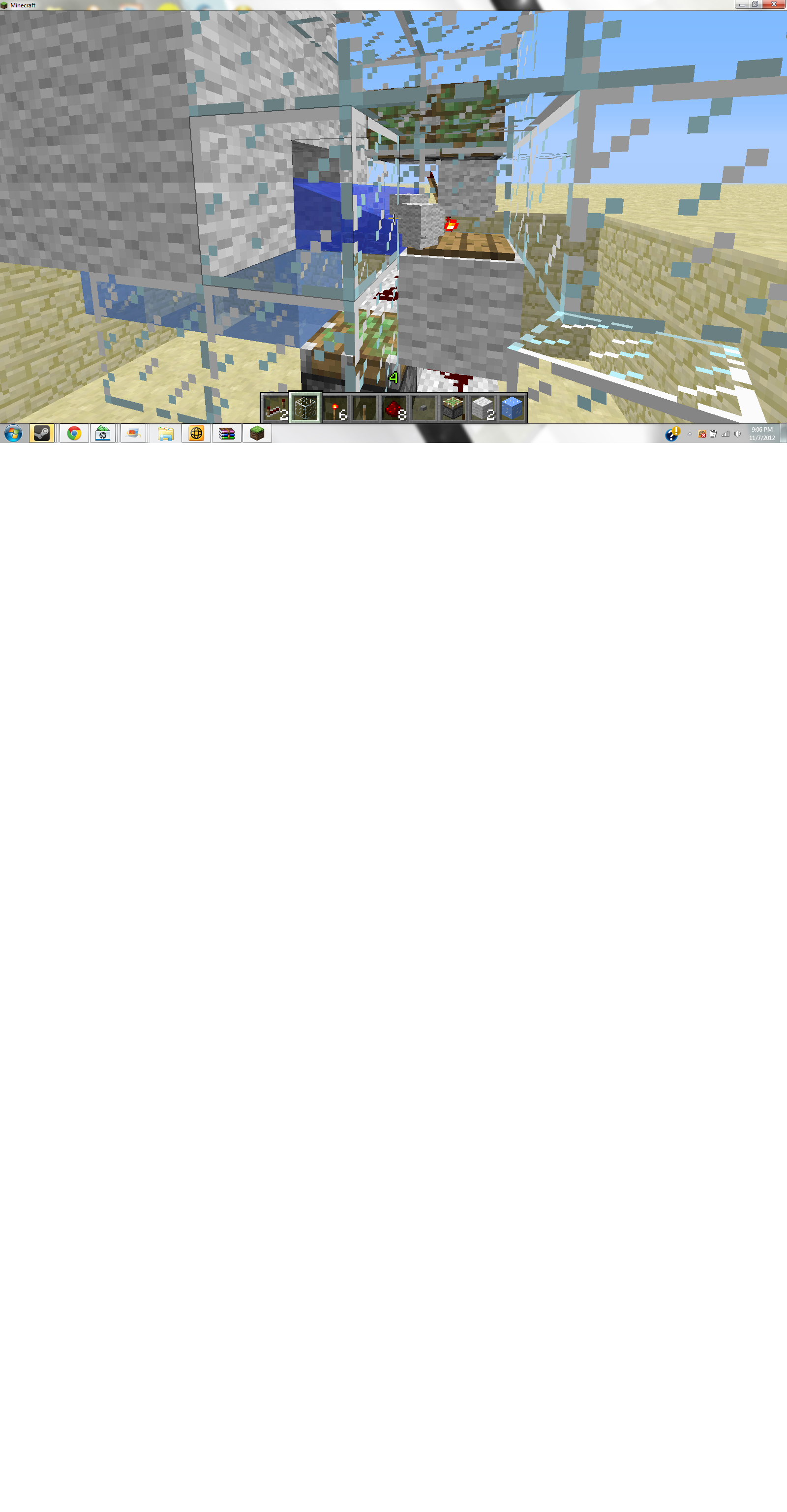 i watched JL's video http://www.youtube.com/watch?v=dBJLXGiBh8A&feature=plcp showing the new item elevators that are possible now that items travel upward when they are trapped in transparent blocks, and decided to try and attach a small one of these item elevators to a compact animal breeding unit.