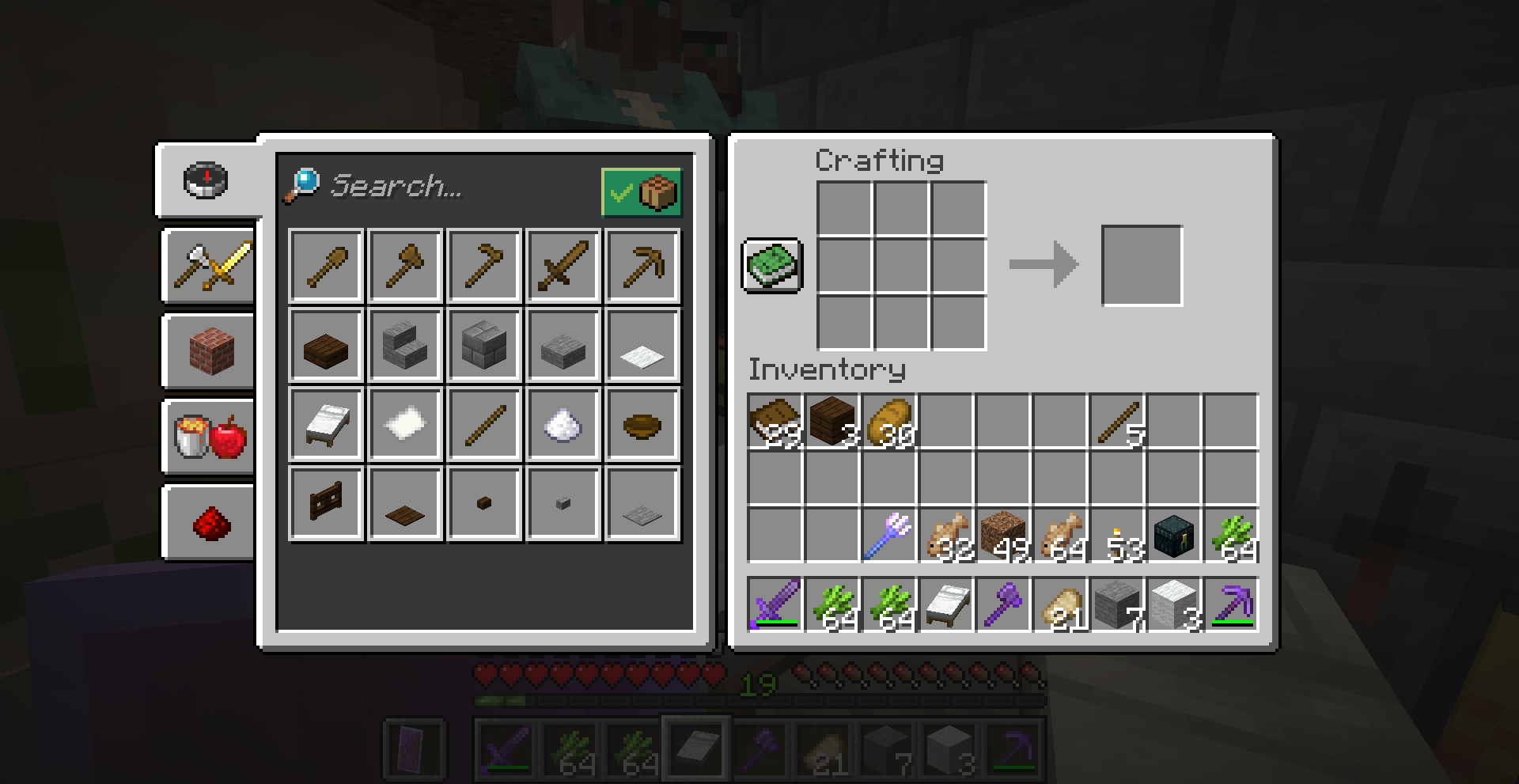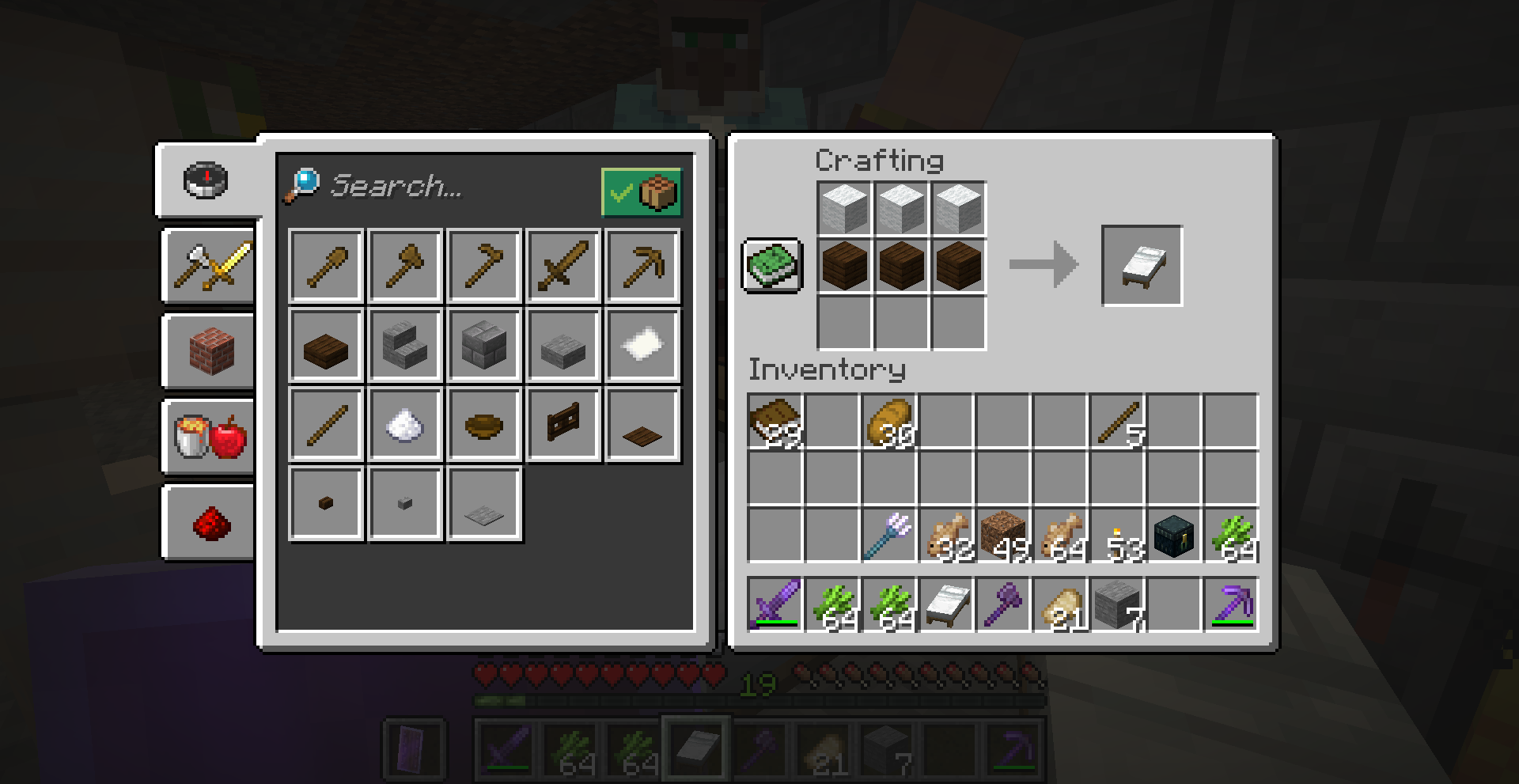 2022-01-18_16.50.45.png- you can see there the bed recipe is not available yet I placed the materials in the table to make 4th, Did not created, closed crafting table and reopened shown in the final image that the bed is now an available build.