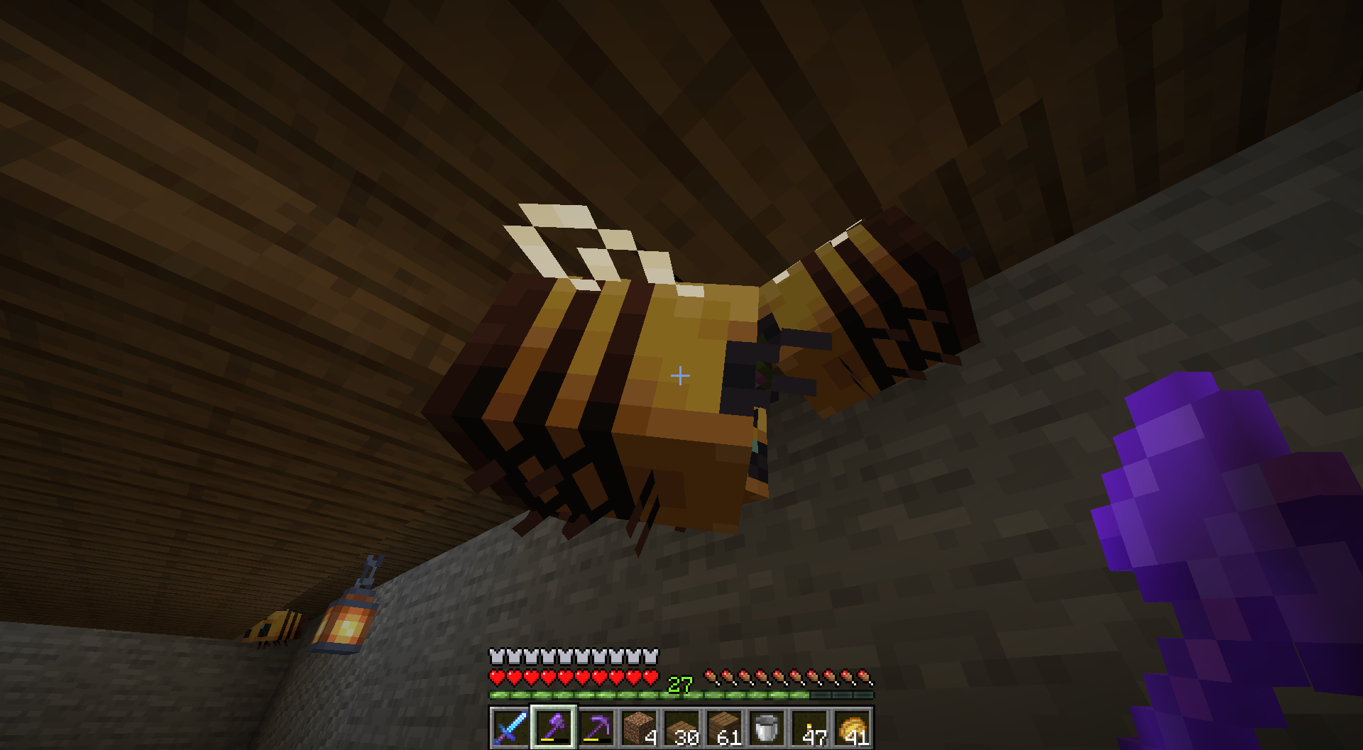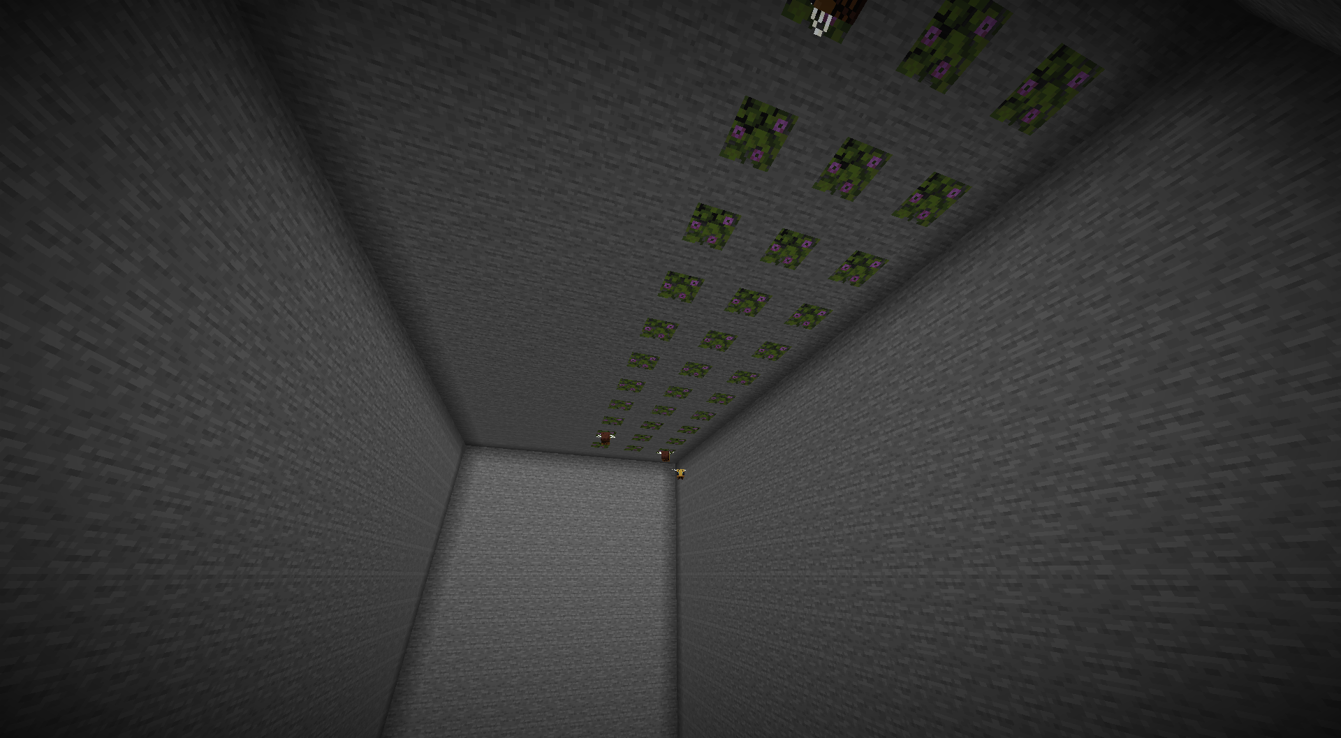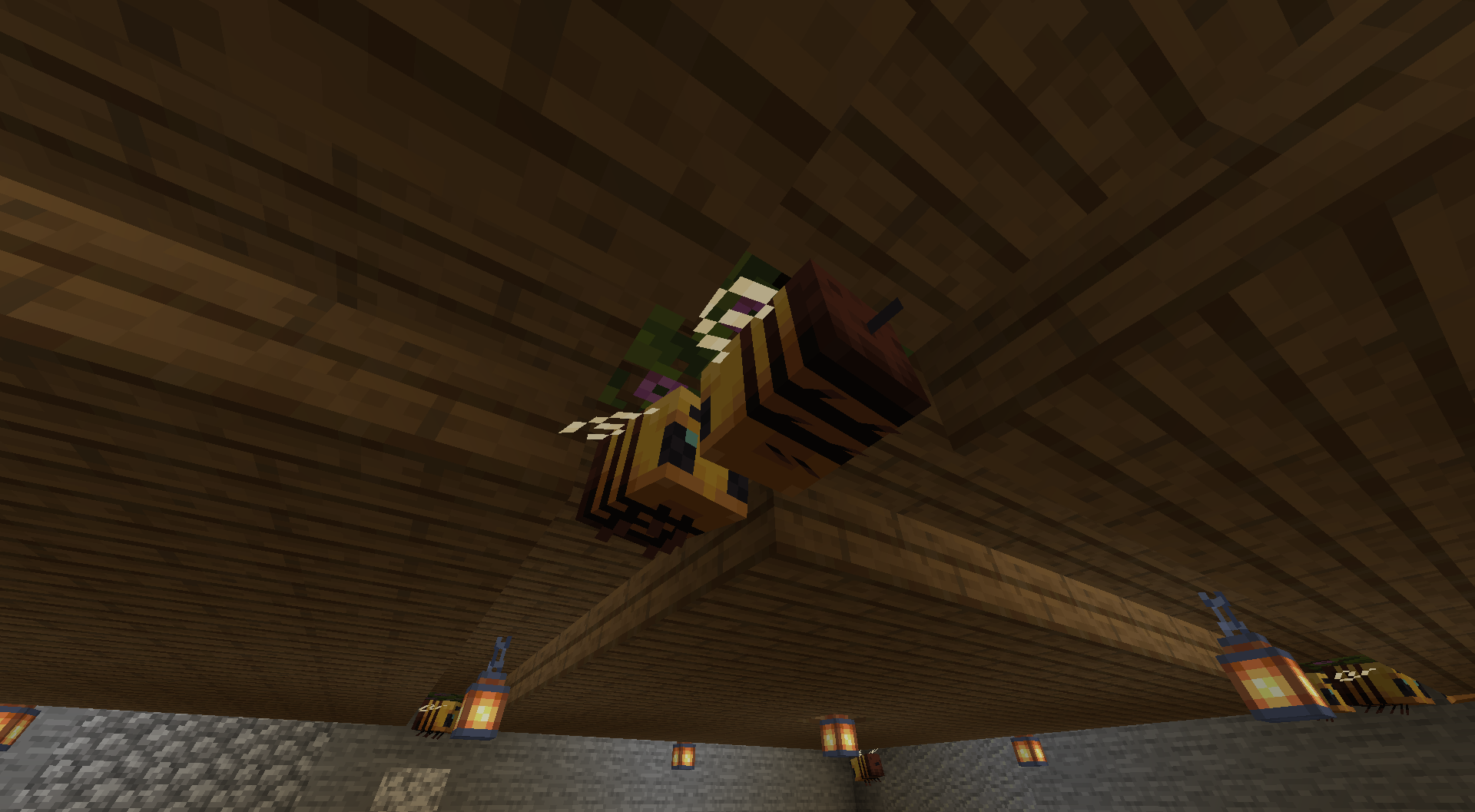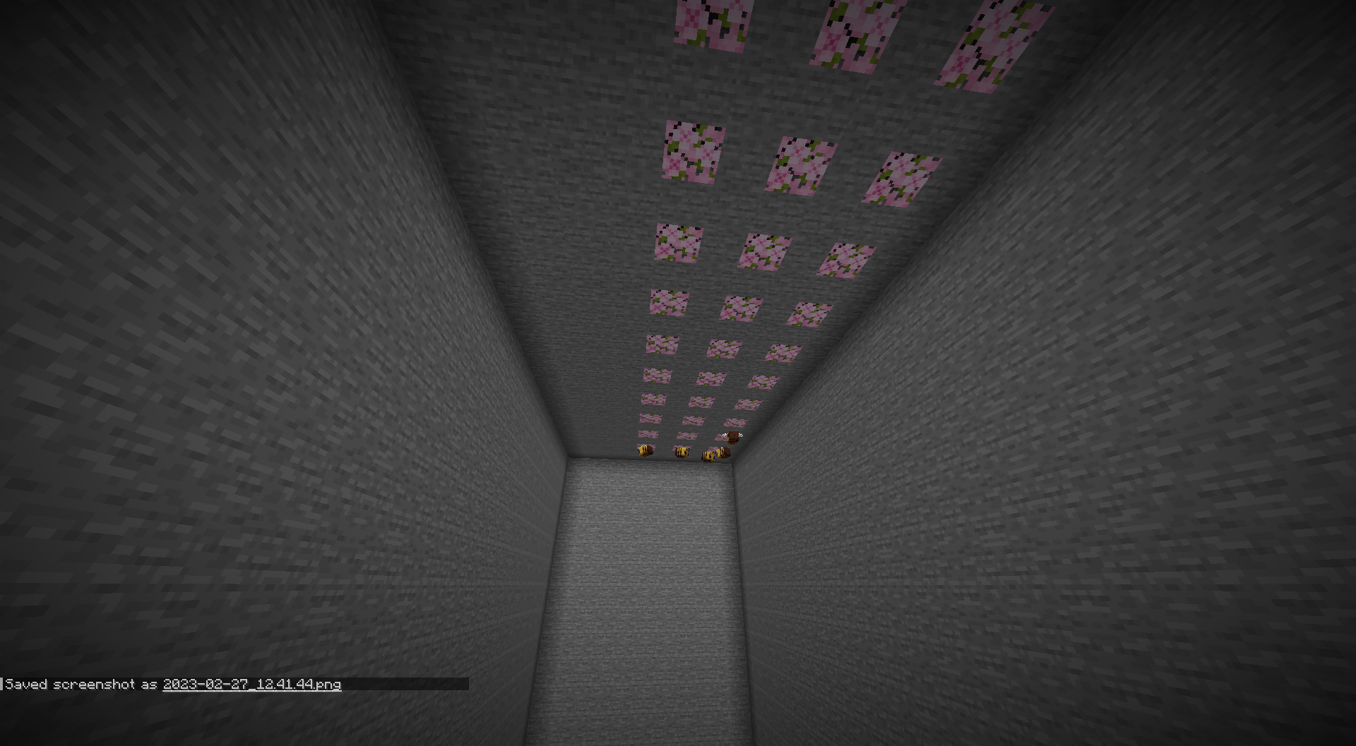 Notes: I've seen that they can gather pollen from top & sides normally. They can even see through an angle of a block Just to bottom doesn't seem to work. None of the bees have pollen w/ many flowers in the roof.